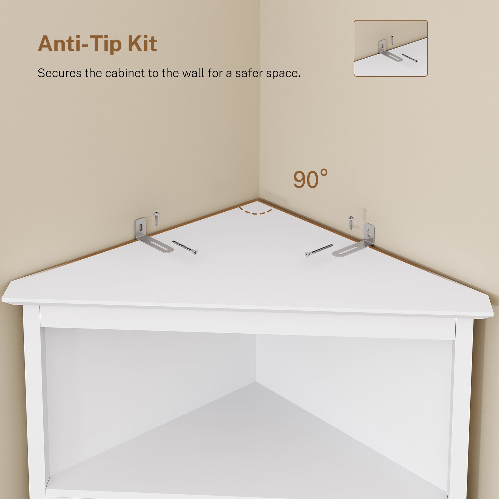 - 🛠️ Storage Construction, Safe Load Bearing: This bathroom corner cabinet adopts a reinforced structural design to ensure stable load. Additionally, an anti-tip strap is included for added safety, so you can be sure to mount it securely to the wall, preventing any unexpected tipping.