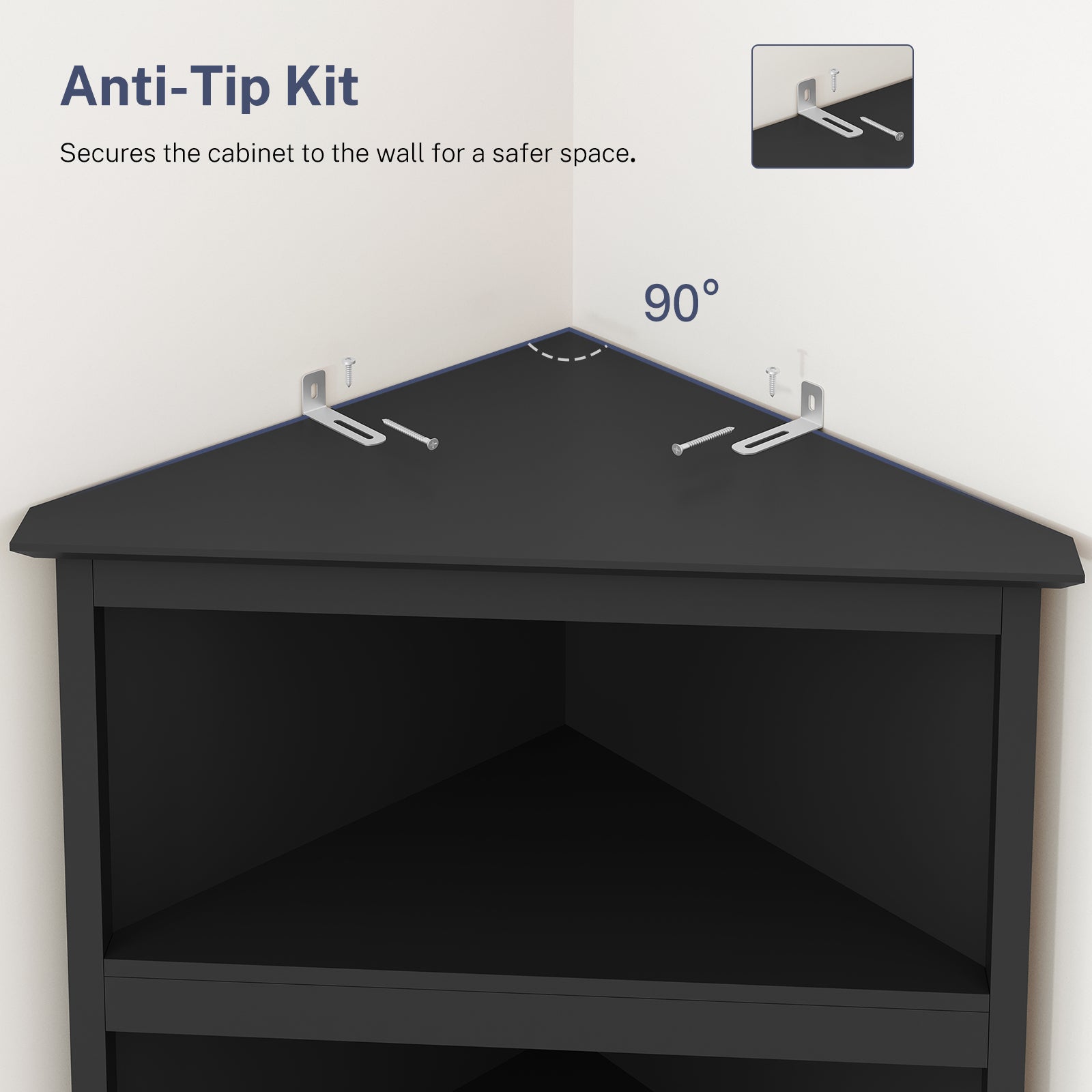 63.7 "H Tall Corner Cabinet with LED Lights, Gothic Style Corner Shelves with Doors, 5-Tier Bathroom Cabinet, Living Room, Dining Room, Black