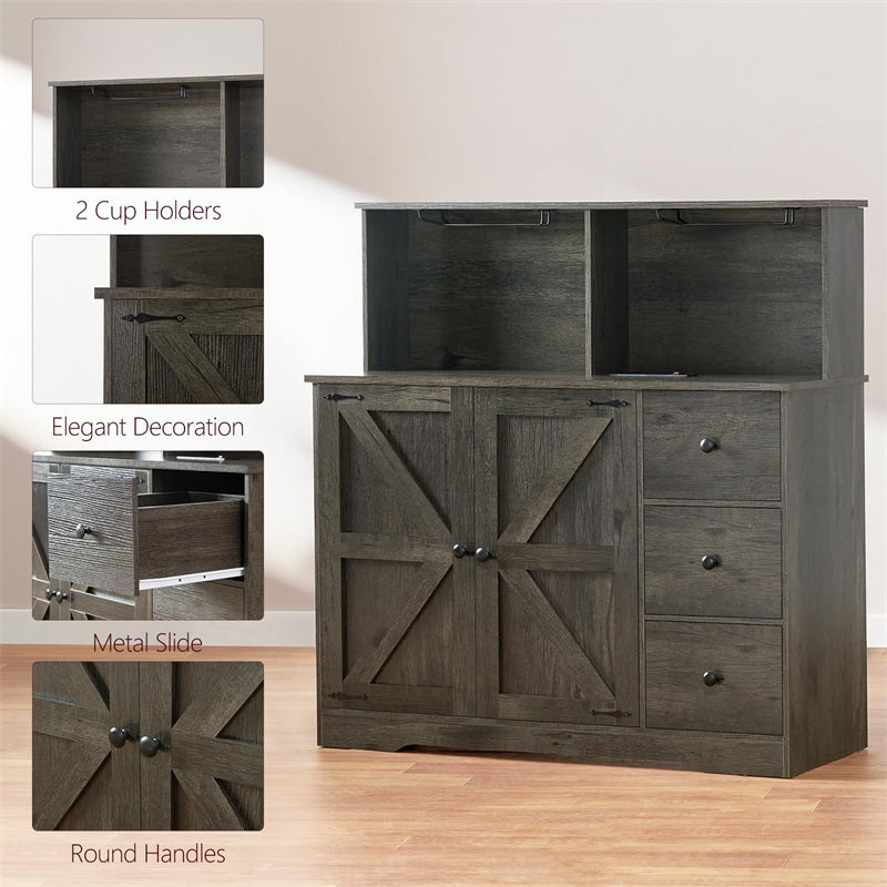 Bigger storage space: There is a double storage space behind the coffee bar cabinet door, whether it is delicate tableware, practical kitchenware or all kinds of life sundries, there is a place to put them, so that your storage needs are fully satisfied.