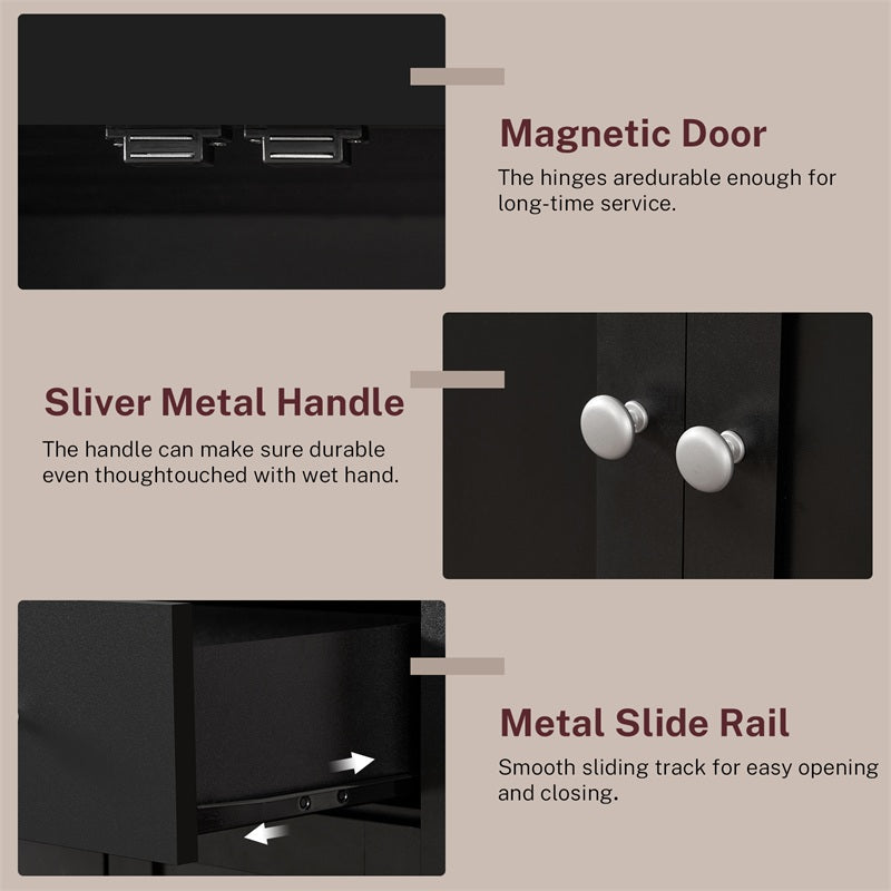 IWELL Black Bathroom Cabinet with 2 Doors, 3 Heights Available, Free Standing Floor Storage Cabinet for Bathroom, Living Room, Kitchen, Black