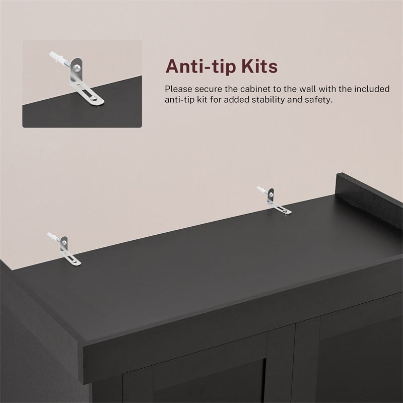 The IWELL storage cabinet with double doors and adjustable shelves is a perfect choice for you to organize and decorate your house. With elegant black color, smooth lines and classic fashionable design, it can reflect your great taste, add novelties and romance to your house and impress your visitors. With 1 adjustable shelves and high-quality durable material, it can store items of different sizes for a long time and keep your stuff away from dust and moisture.