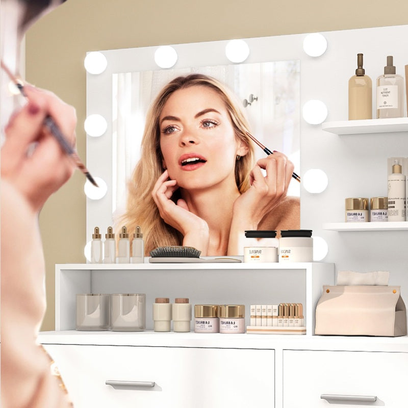 - Tri-Color Lighting & HD Mirror: With 10 Hollywood bulbs, 3 lighting modes, achieve flawless makeup looks for any occasion and complete control over your makeup. Indulge in the star-like makeup experience now!
