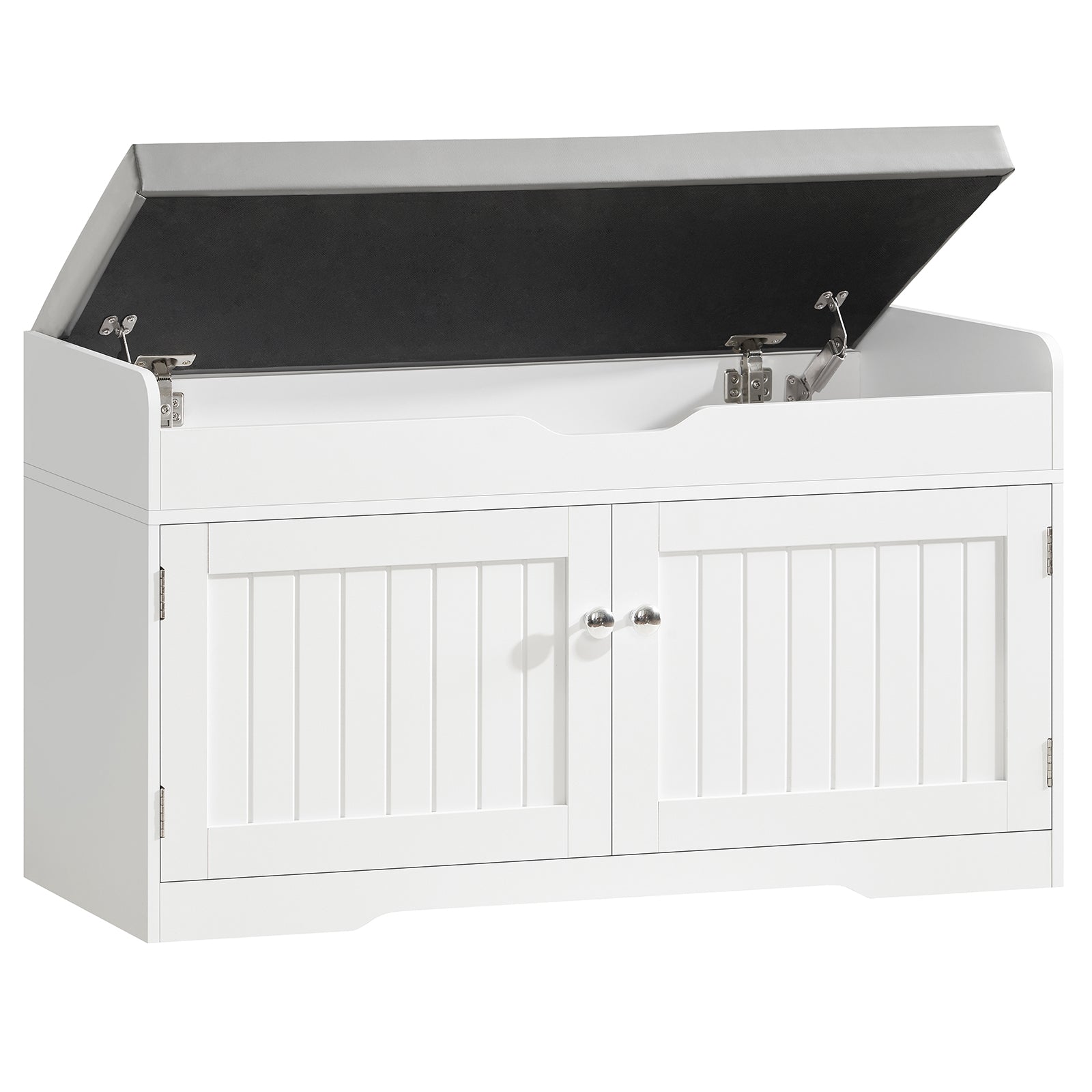 TEENFON 2-Tier Storage Bench, Shoe Bench with Adjustable Shelf & Lift Top Storage, Entryway Bench with Cushioned Seat,13.8"D x 36.2"W x 19.7"H, Shoe Organizer for Entryway, Living Room, Bedroom, White