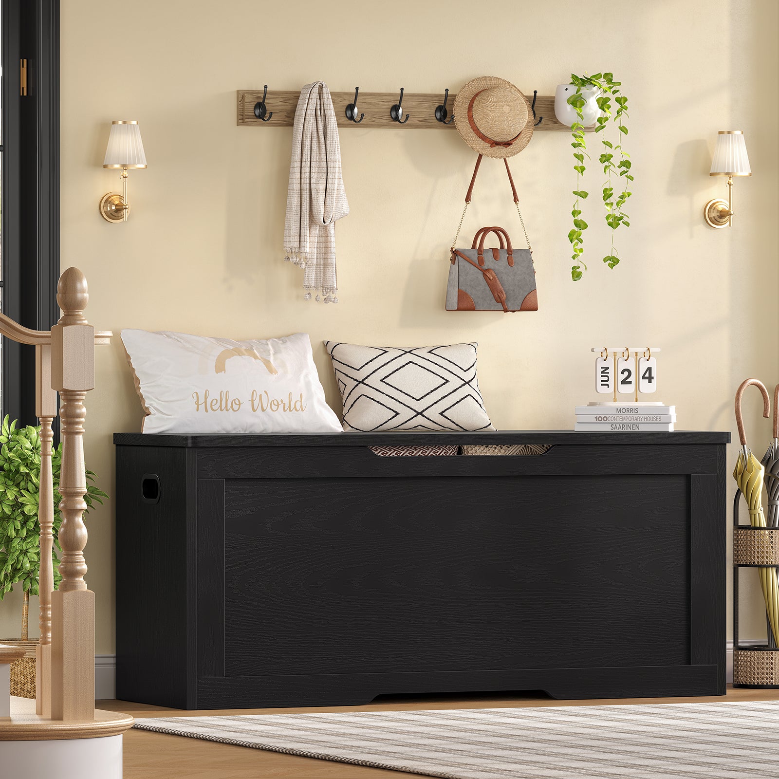 - 【Versatile Usage】Use it as a stylish storage chest in your living room or bedroom to keep organized. You can even make it a focal point in the nursery and store your children's toys and clothes in it. In the entrance, it makes for a great storage bench to sit on while putting on shoes.