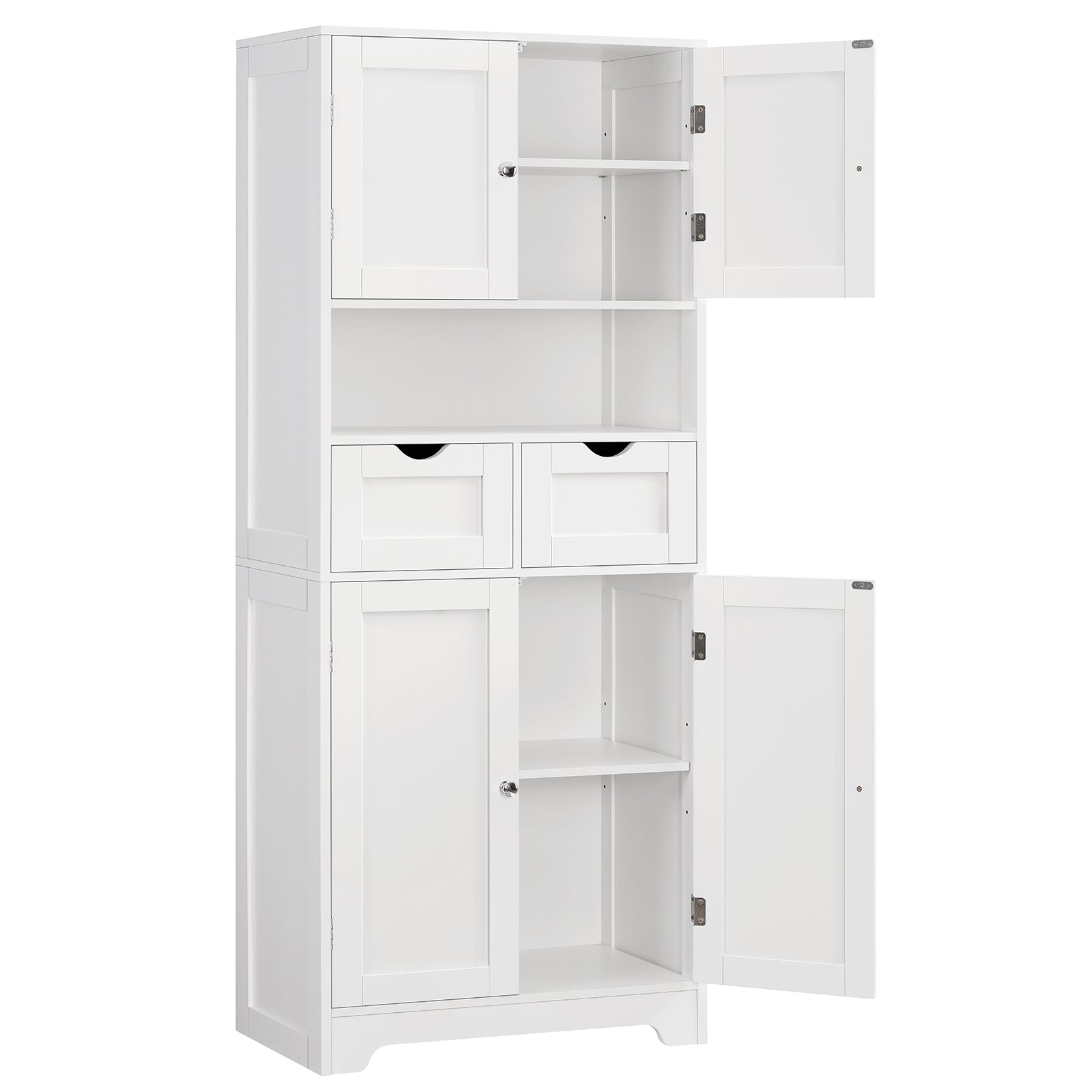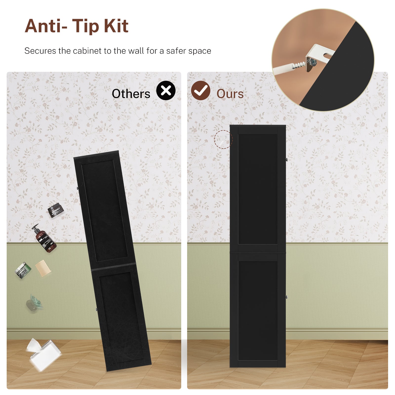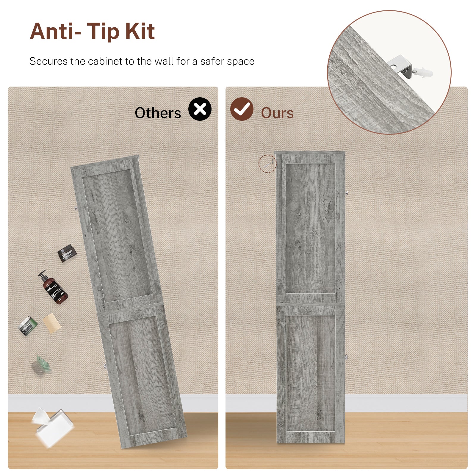 - ⭐【Sturdy & Safe】Made of High-quality engineered wood, this cabinet can withstand the humidity of the bathroom and prevents moisture. Solid structure and excellent durability for long-time use. Plus, it comes with an anti-tip kit to attach the tall cabinet to the wall for added stability and safety.