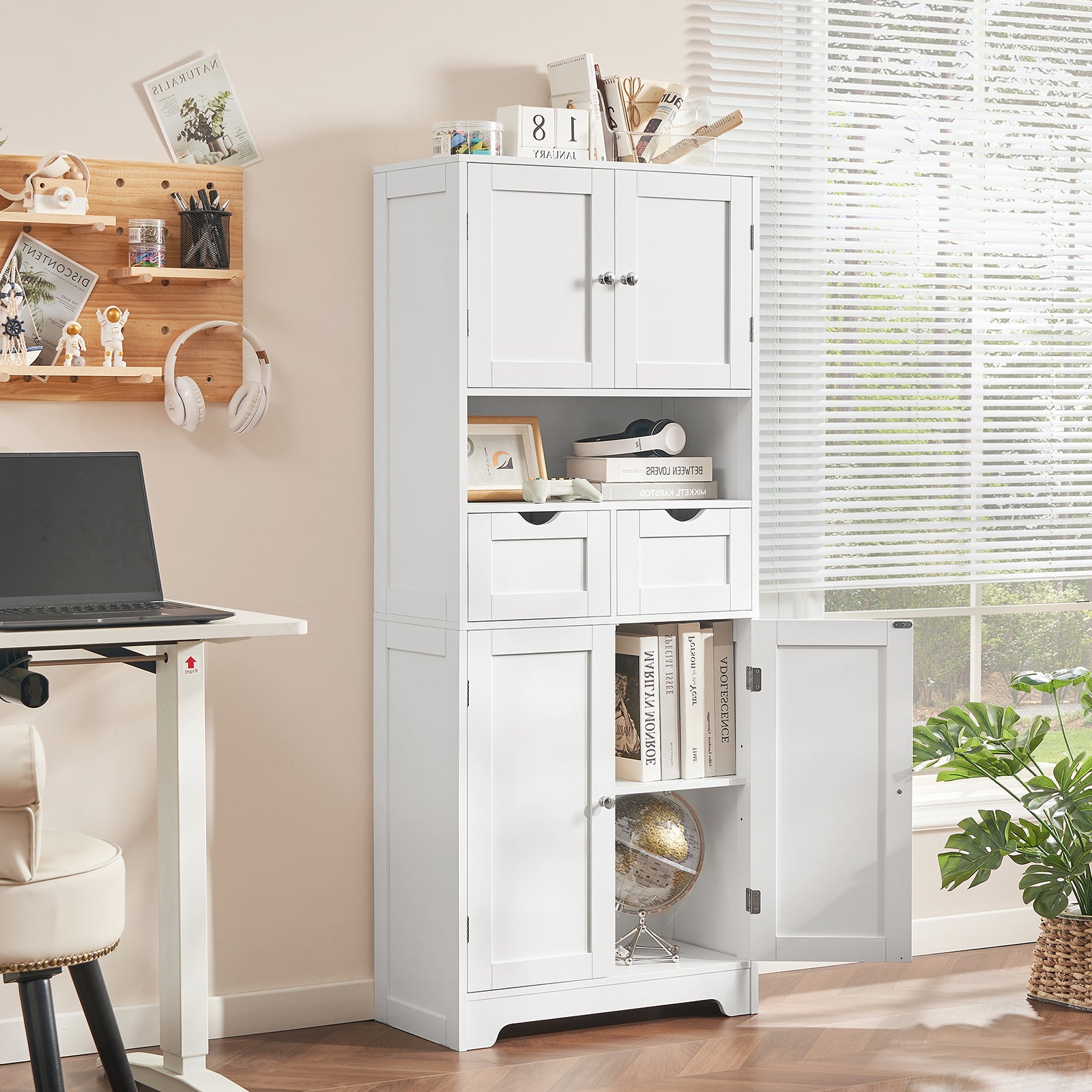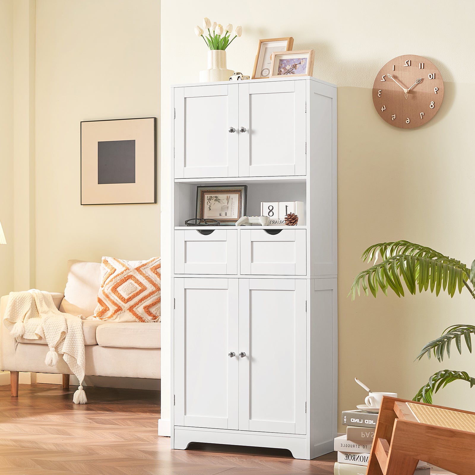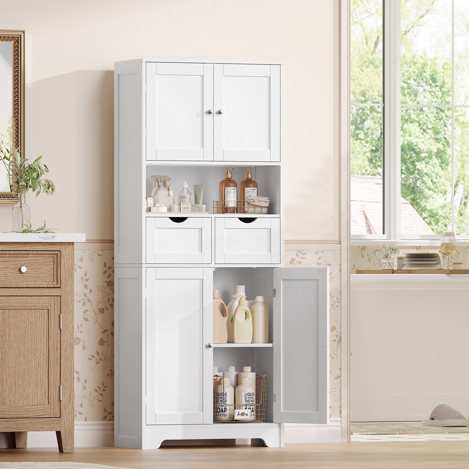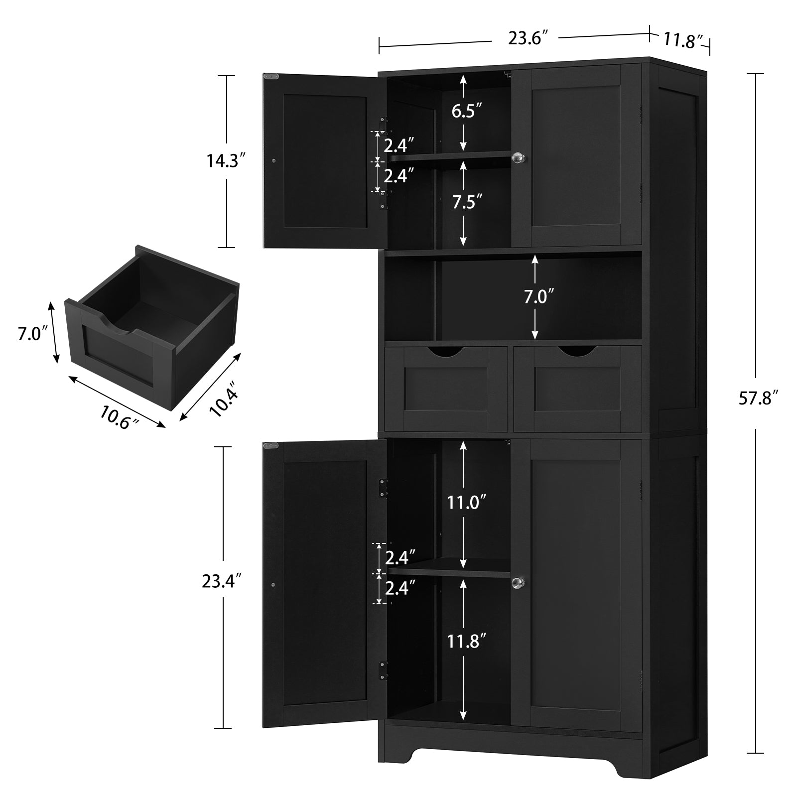 - ⭐【Sturdy & Safe】Made of High-quality engineered wood, this cabinet can withstand the humidity of the bathroom and prevents moisture. Solid structure and excellent durability for long-time use. Plus, it comes with an anti-tip kit to attach the tall cabinet to the wall for added stability and safety.