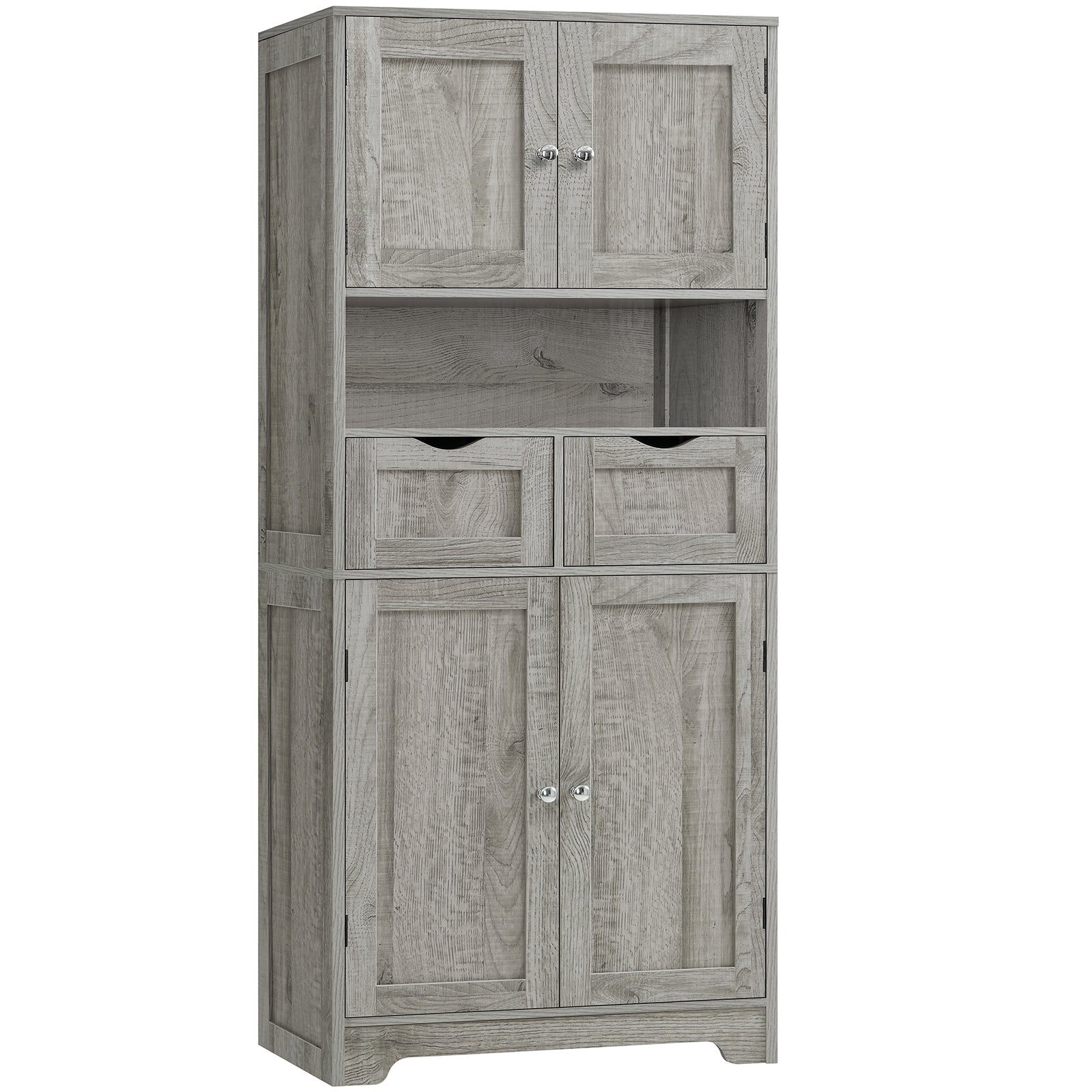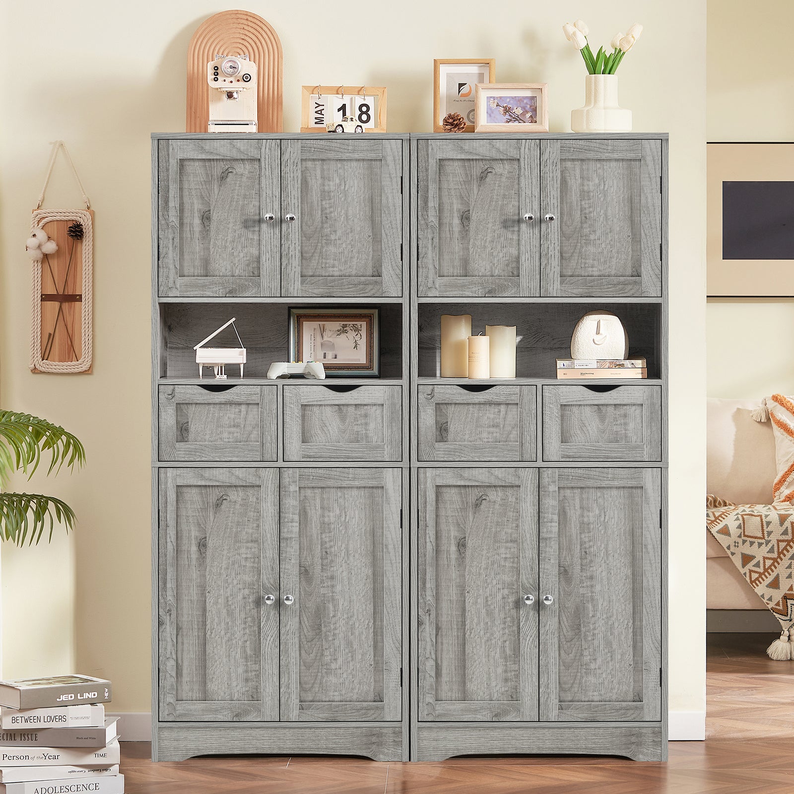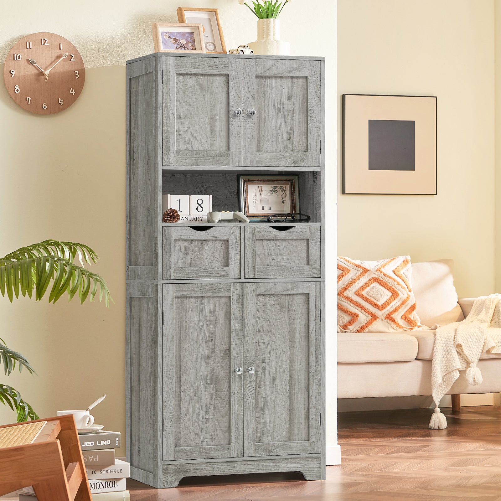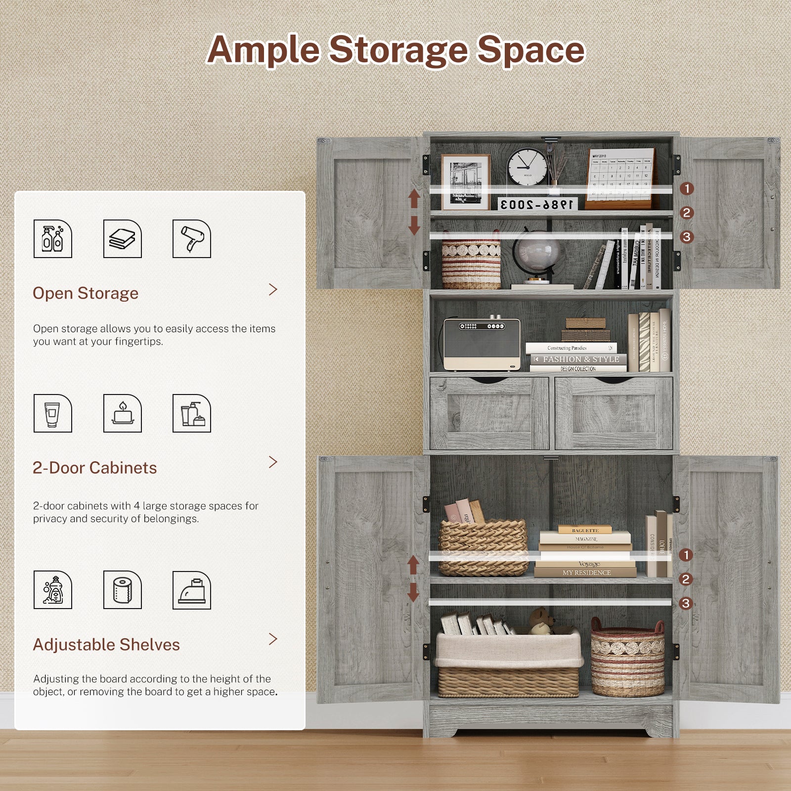 TEENFON 57.8" H Tall Storage Cabinet with 2 Drawers & 2 Adjustable Shelves, Bathroom Storage Cabinet with 4 Doors, Floor Cupboard, for Living Room, Dining Room, Entryway, Woodgrain Gray