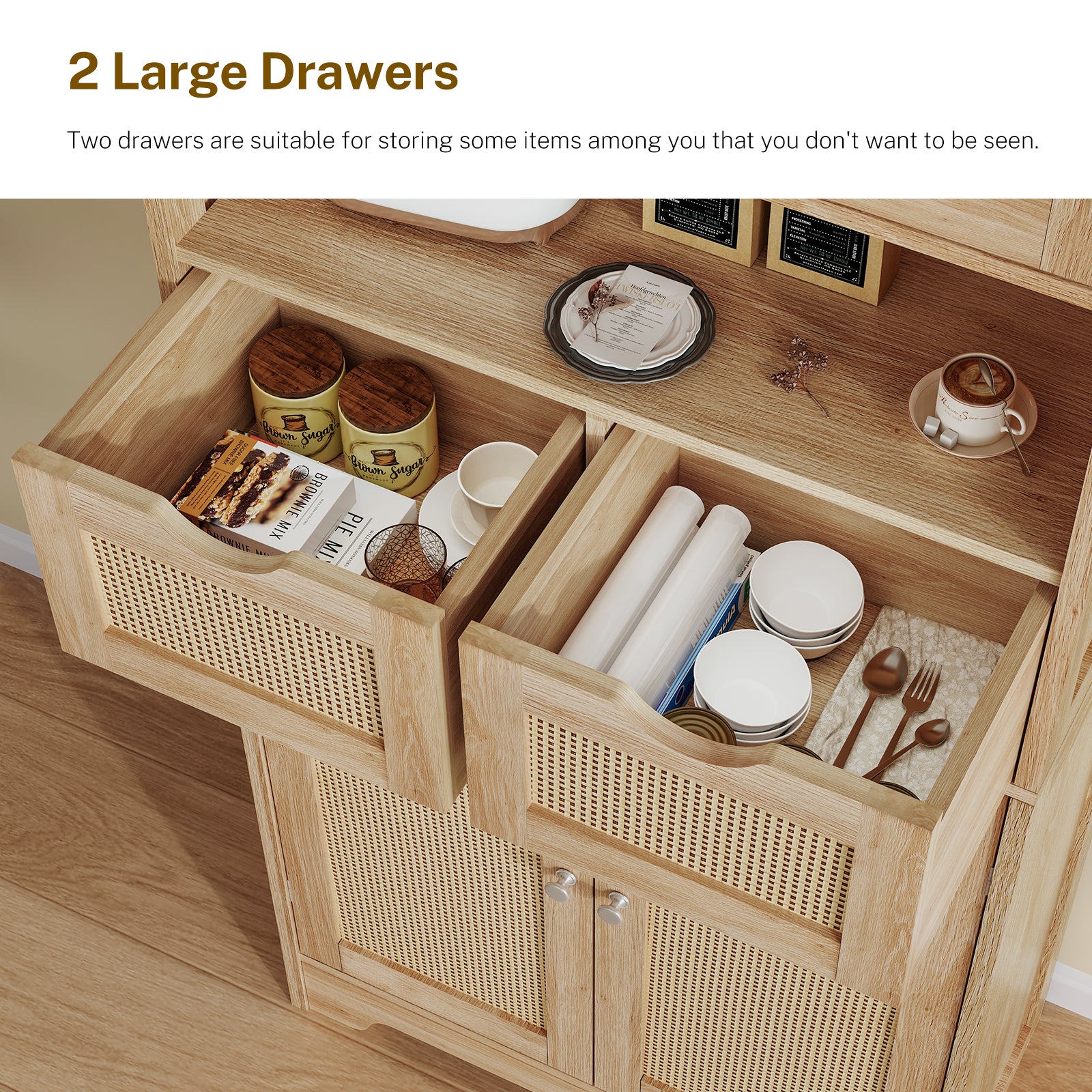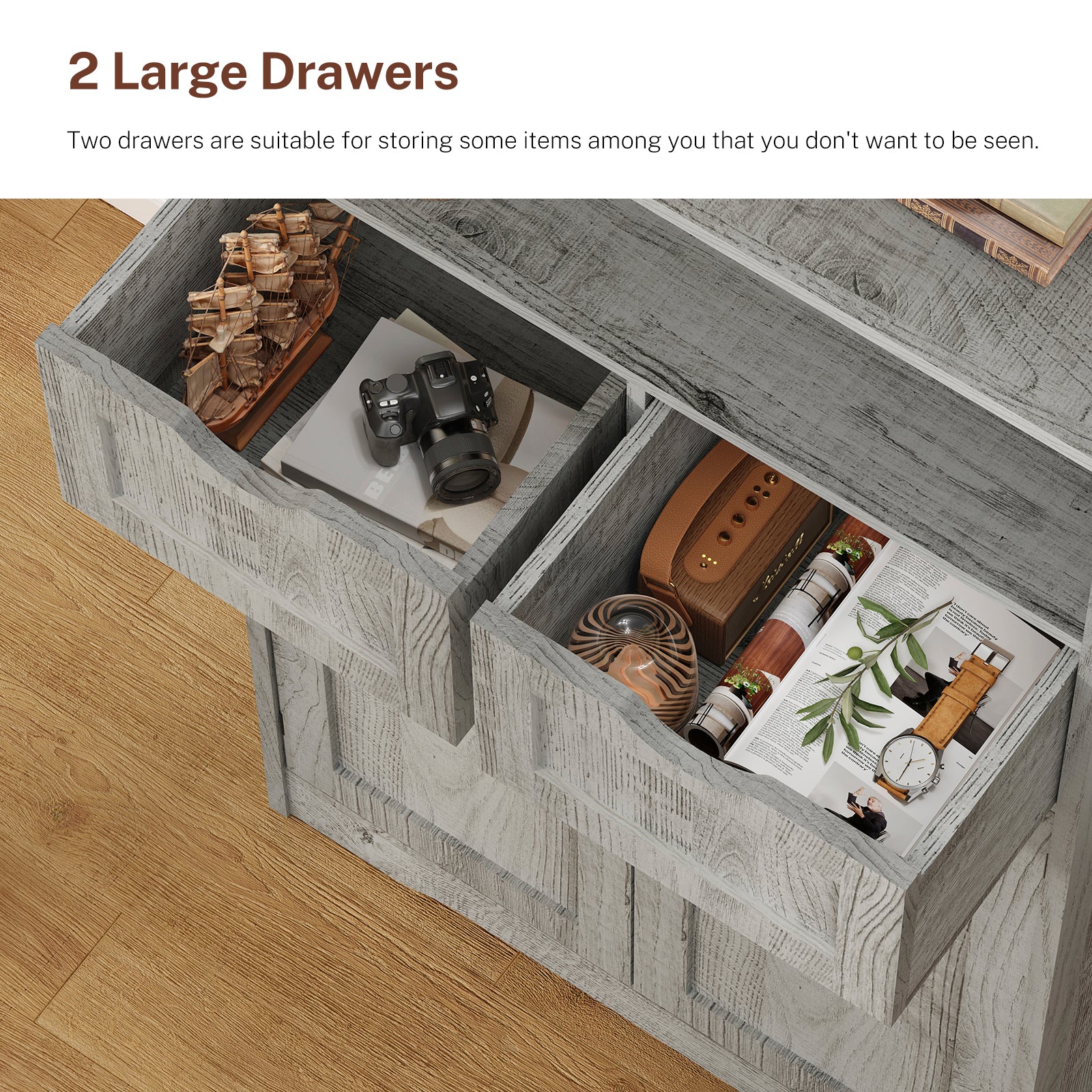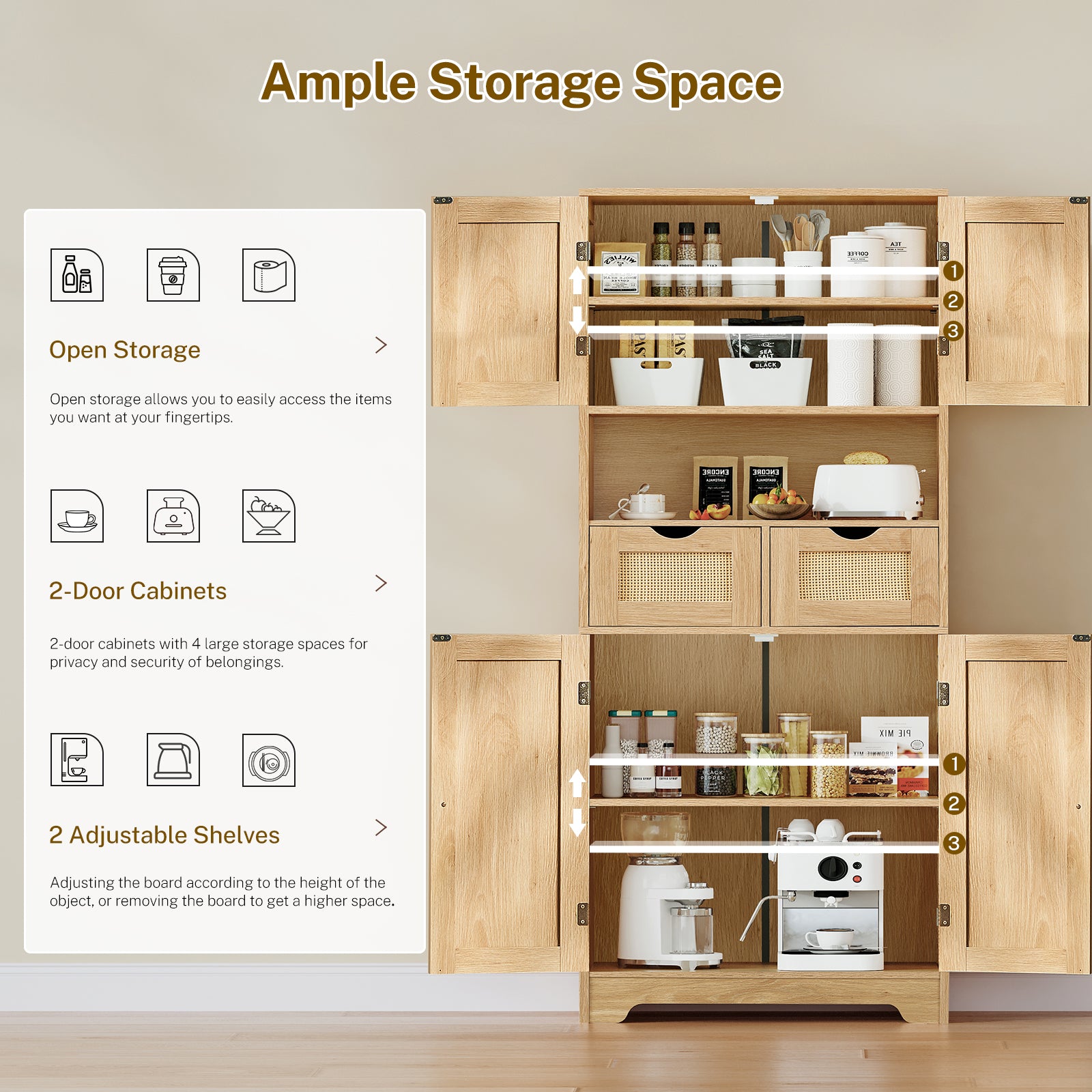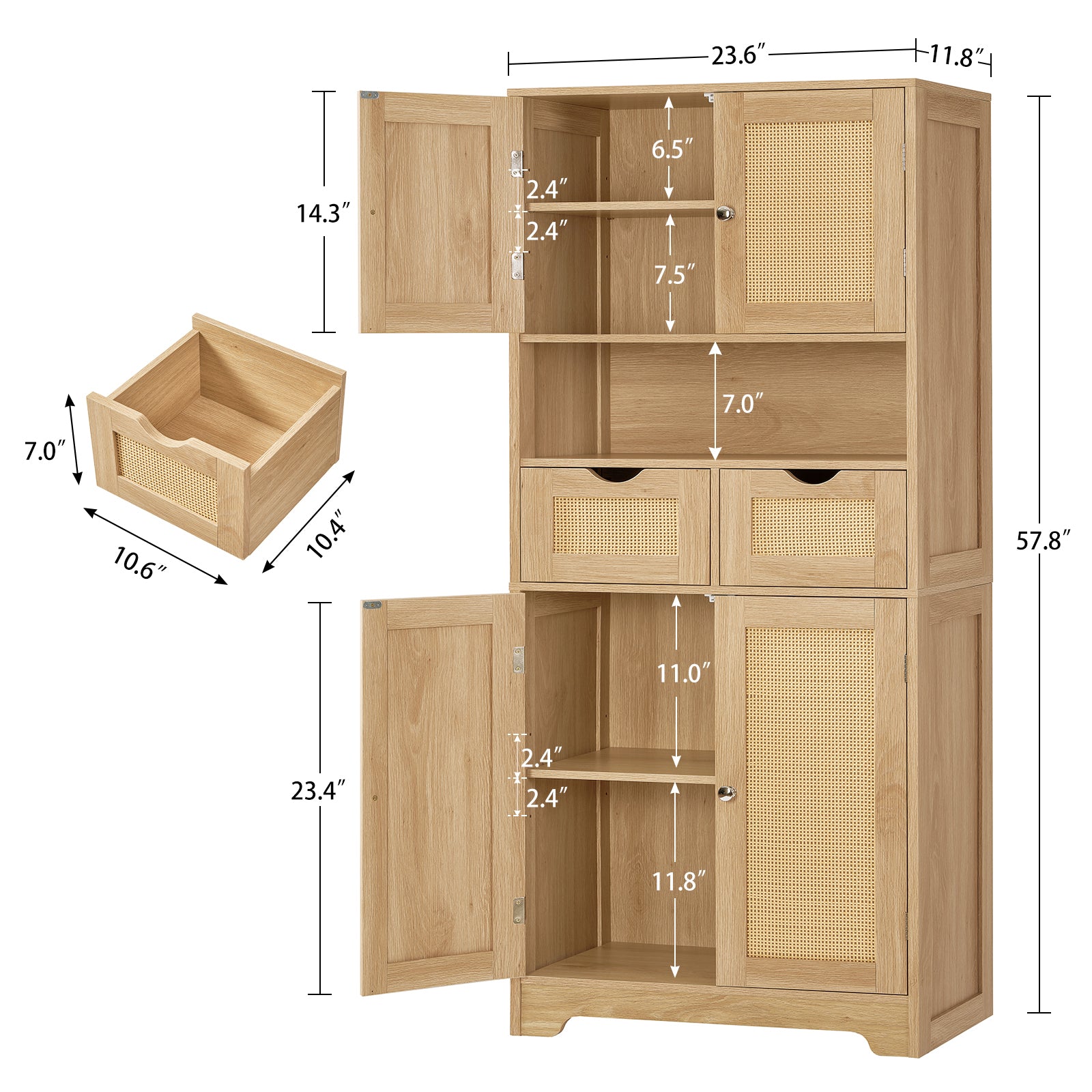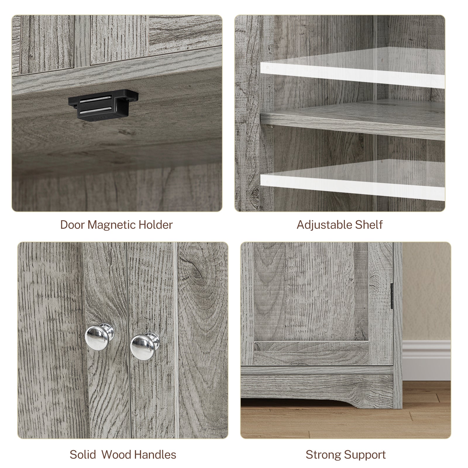 TEENFON 57.8" H Tall Storage Cabinet with 2 Drawers & 2 Adjustable Shelves, Bathroom Storage Cabinet with 4 Doors, Floor Cupboard, for Living Room, Dining Room, Entryway, Woodgrain Gray
