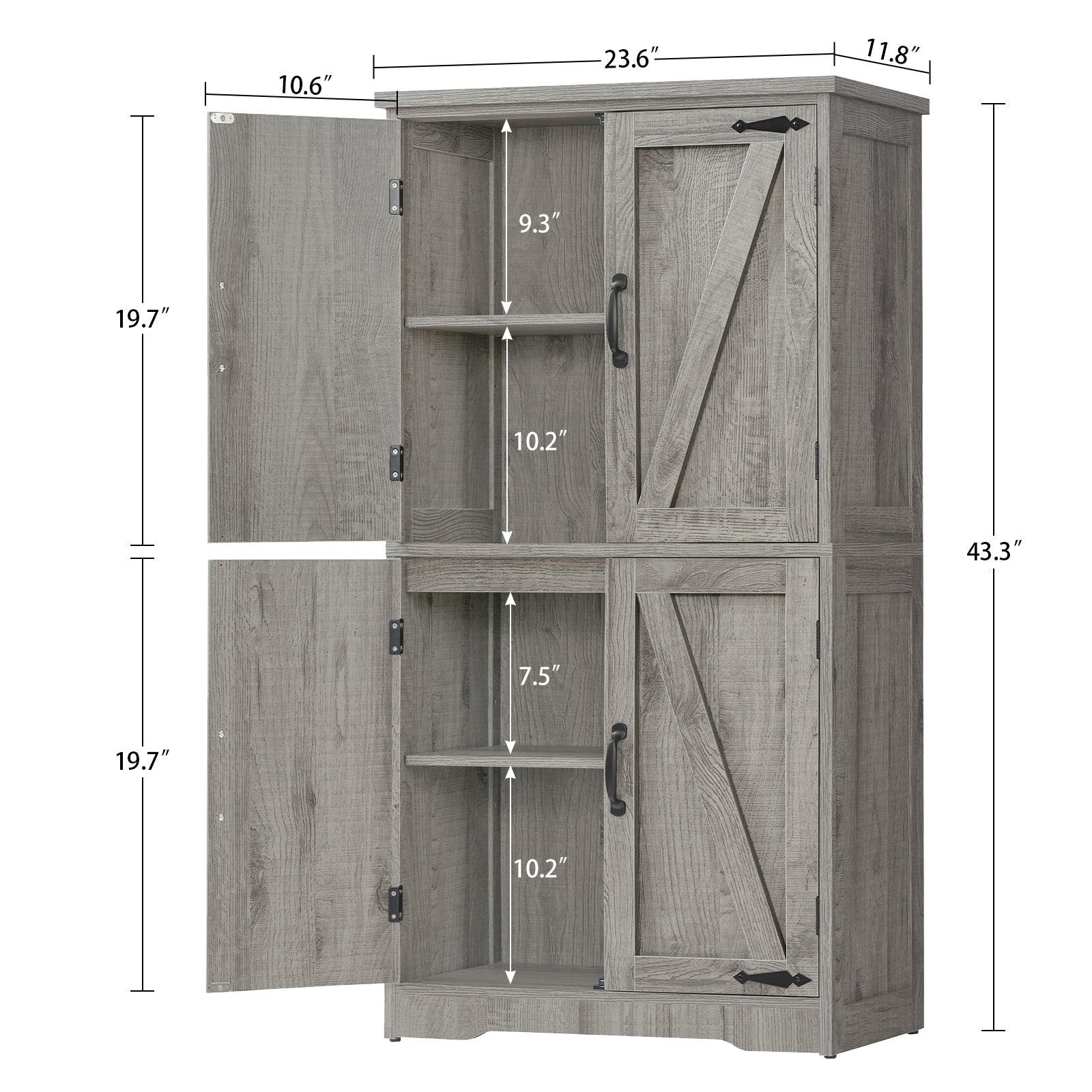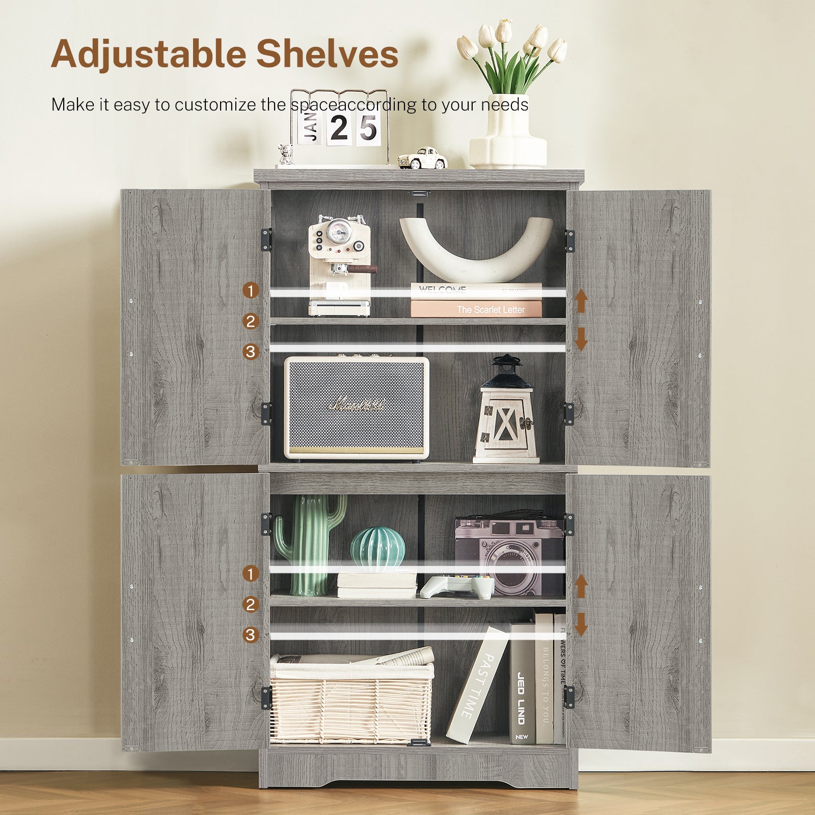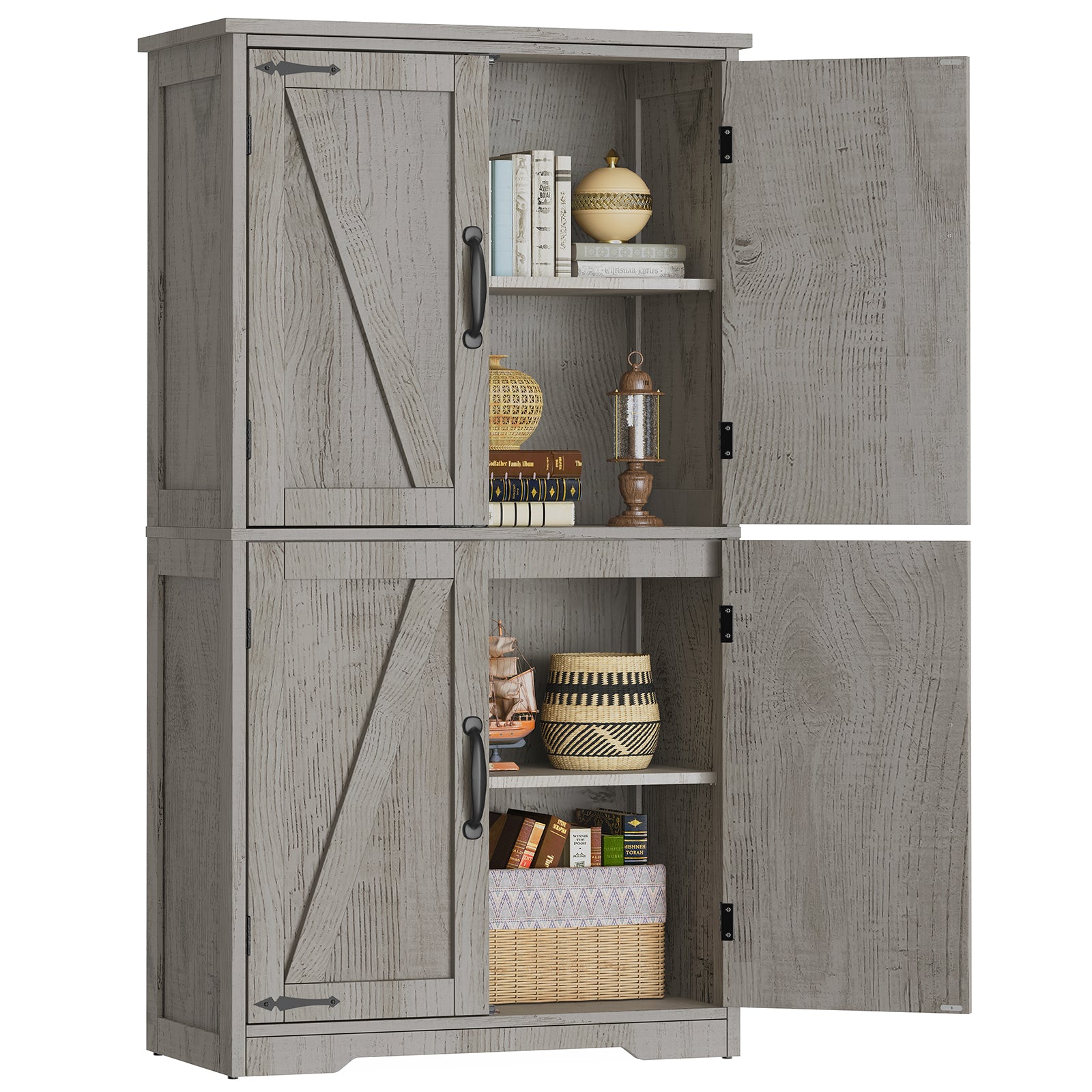 TEENFON Farmhouse Storage Cabinet with 2 Adjustable Shelves, Bathroom Cabinet with 4 Doors, Cupboard for Kitchen, Living Room, Rustic Gray