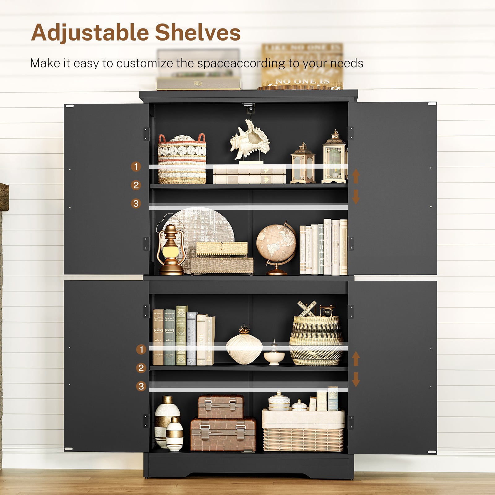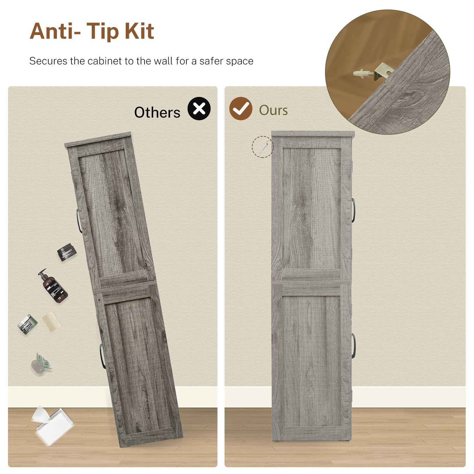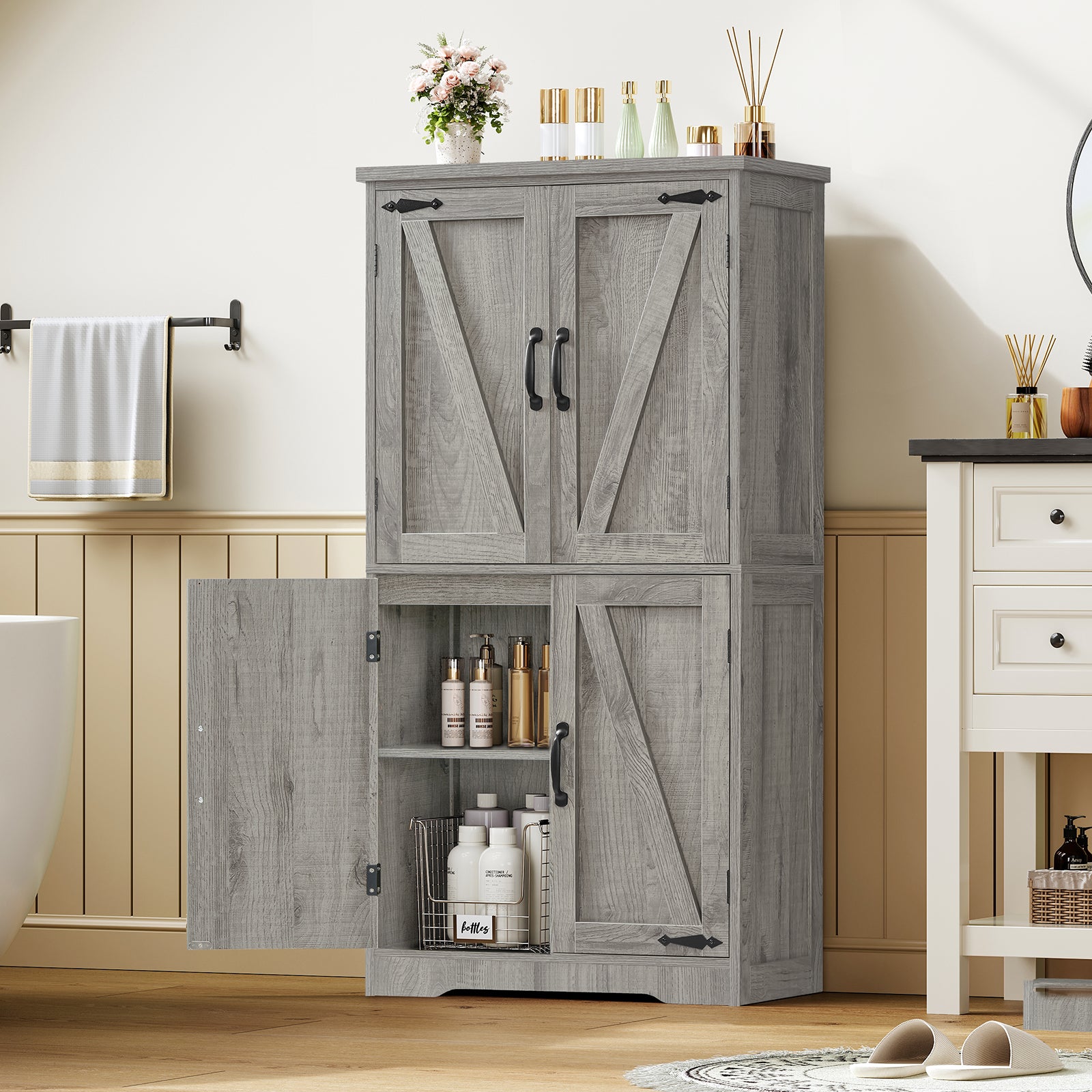 TEENFON Farmhouse Storage Cabinet with 2 Adjustable Shelves, Bathroom Cabinet with 4 Doors, Cupboard for Kitchen, Living Room, Rustic Gray