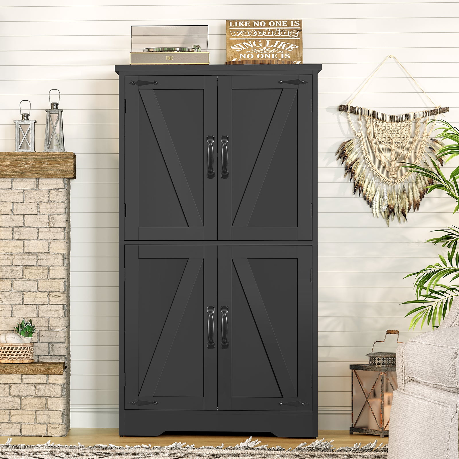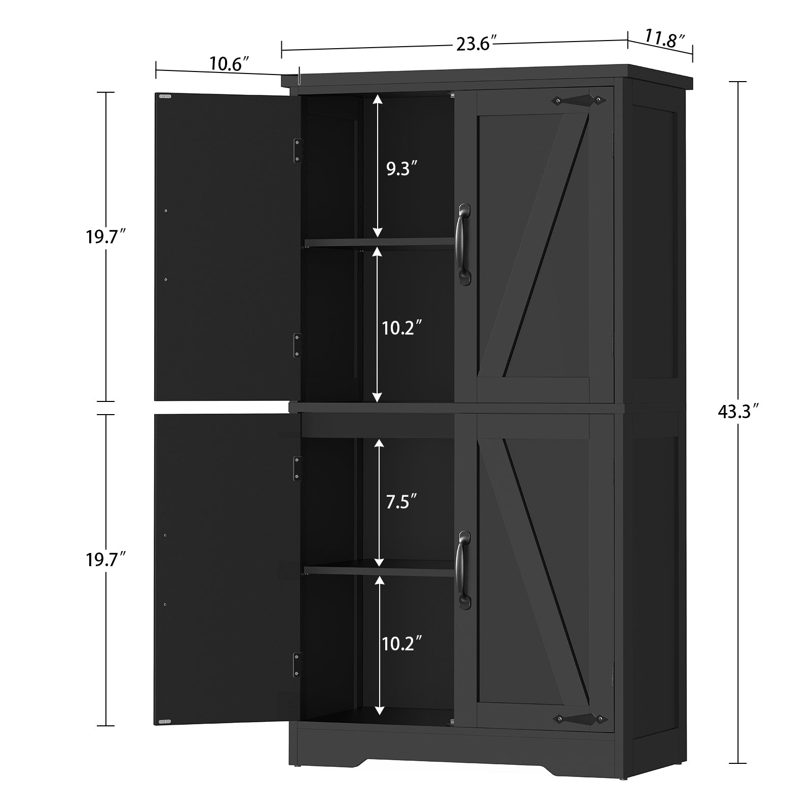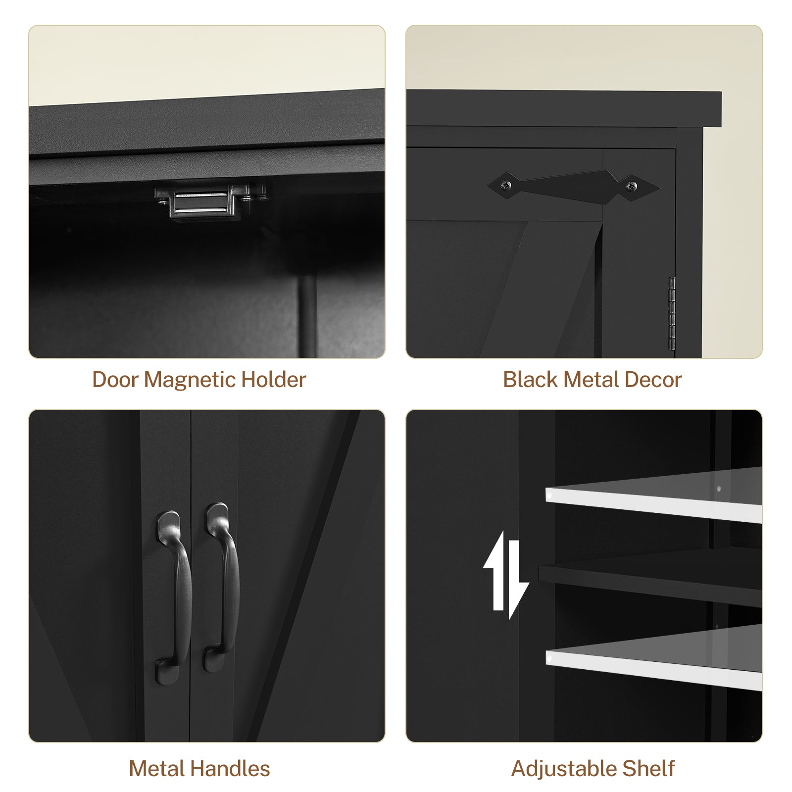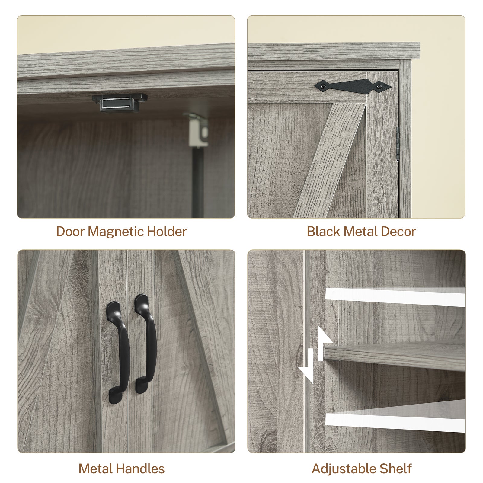 · 【Elegant Design & Distinctive Charm】The farmhouse storage cabinet incorporates classic barn door design elements, adding a touch of vintage and rustic flair. The four barn doors serve as a page out of a countryside idyll, creating an inviting and serene atmosphere.