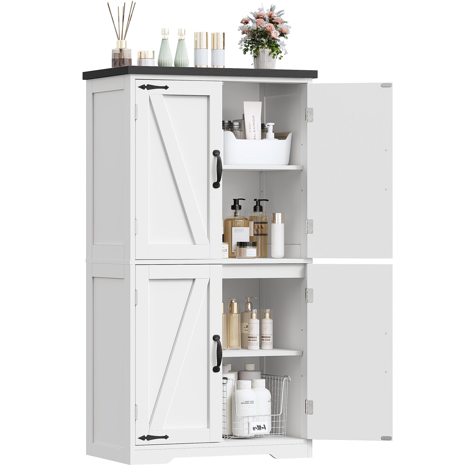 · 【Ample Storage & Efficient Space Utilization】Storage cabinet interiors are thoughtfully designed with 2 adjustable shelves, offering ample storage space to accommodate all your life essentials and personal care items. Behind the 4 barn doors lie 4 tiers of hidden storage compartments, enabling effortless organization and maintaining a tidy and orderly for your room.