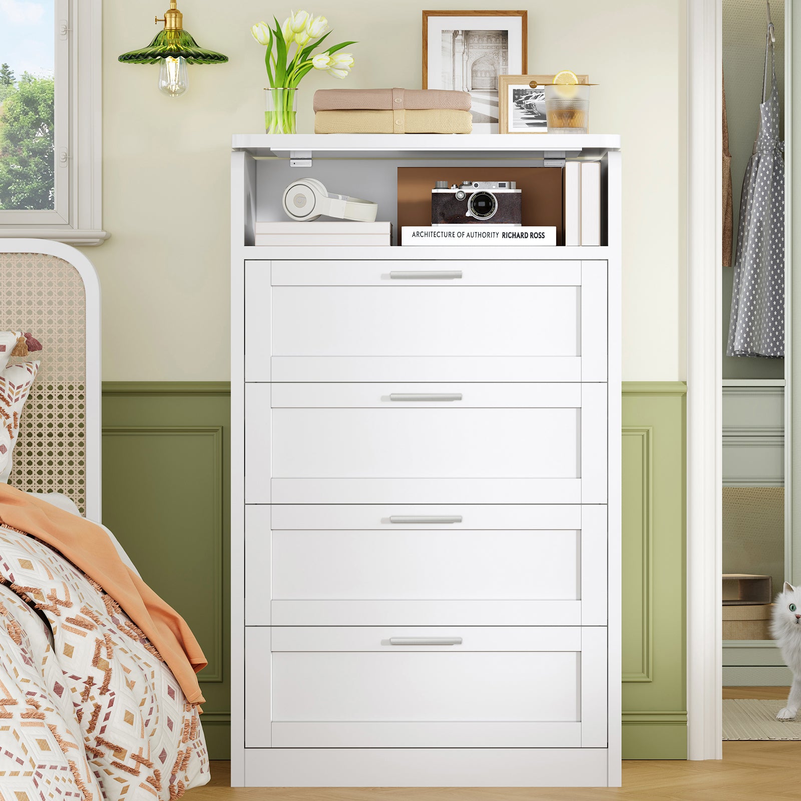 - 【4-Schubladen-Kommode Hochkapazität】 Diese Kommode weiß, eine echte Kommode mit schubladen, verfügt über 4 geräumige Schubladen plus Oberseiten-Displaybereich, die alles aufnehmen: Kosmetika, Unterwäsche, Socken, Hemden und Shorts. Als premium Komodenschrank für Schlafzimmer lässt sie sich zudem optimal nutzen – auf der Oberseite platzierst du Duftkerzen, Grünpflanzen oder Dekoartikel, sodass Aufbewahrung und Ästhetik Hand in Hand gehen. Die Kommode weiß löst Unordnungs-Probleme im Schlafzimmer oder Wohnzimmer sofort und maximiert die Räumlichkeit effizient!