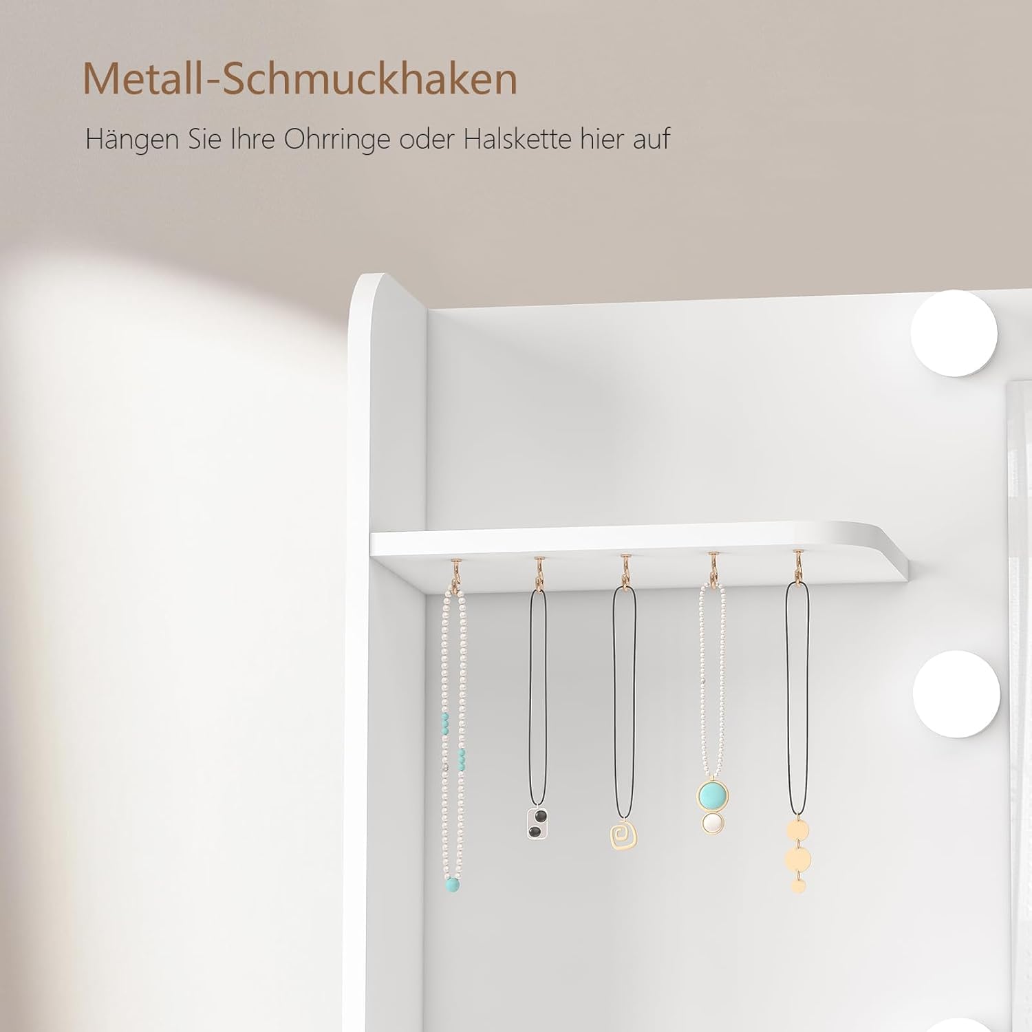 TEENFON Large Vanity Desk with LED Lighted Mirror & Power Outlet,Makeup Vanity Table with 7 Drawers,4 Shelves and 5 Hooks,Vanity Table, Vanity Desk Set for Bedroom,Bathroom,White