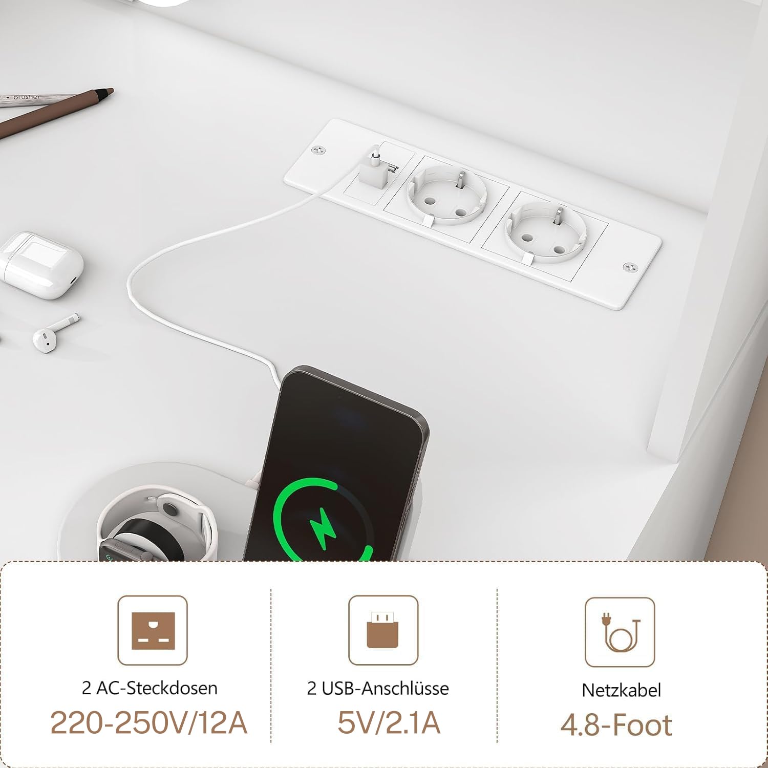 Large Vanity Desk with LED Lighted Mirror & Power Outlet,Makeup Vanity Table with 7 Drawers,4 Shelves and 5 Hooks,Vanity Table, Vanity Desk Set for Bedroom,Bathroom,White