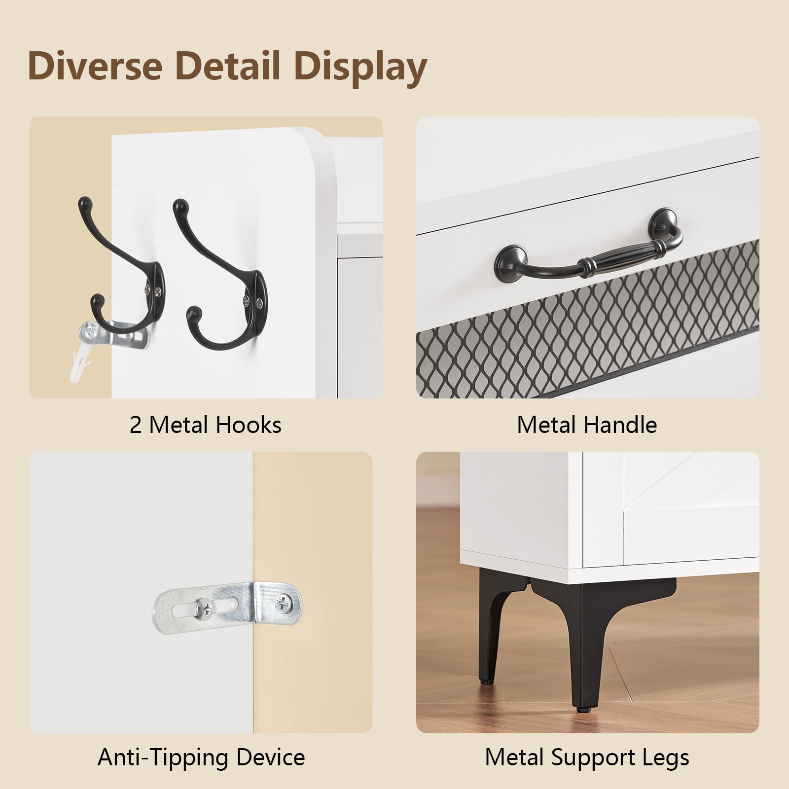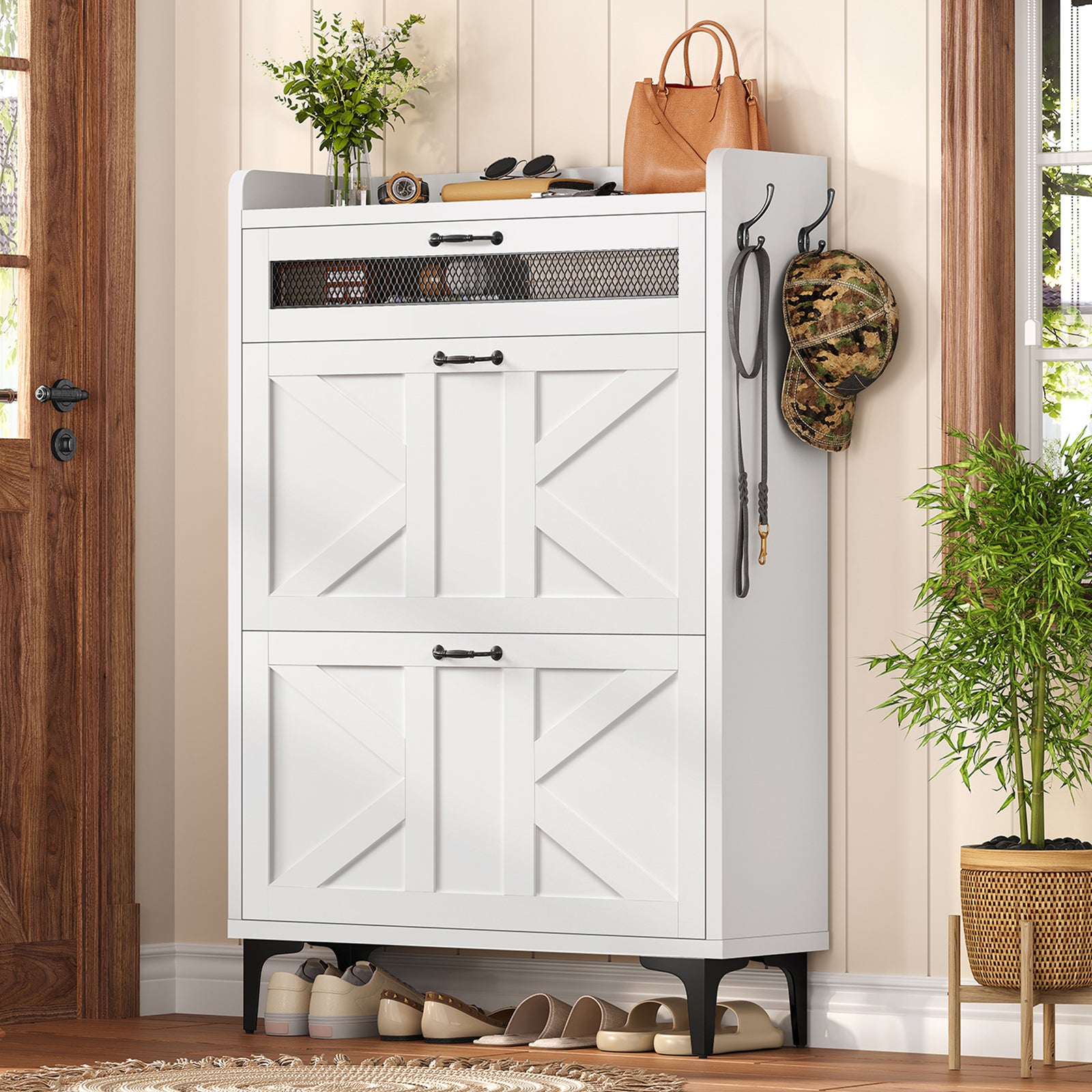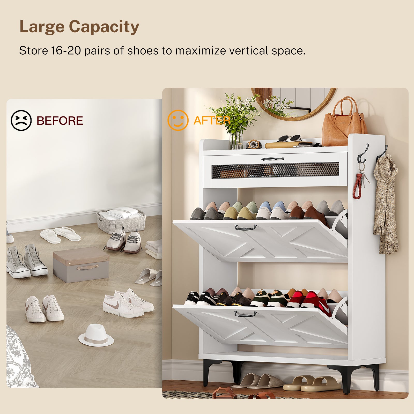 - 【Safe & Elegant】The farmhouse shoe cabinet not only organizes your shoes but also adds a touch of rustic elegance to any entryway, hallway, or foyer. The included wall-mounted anti-tip hardware provides extra safety, making this entrance shoe cabinet a reliable choice for homes with children and pets