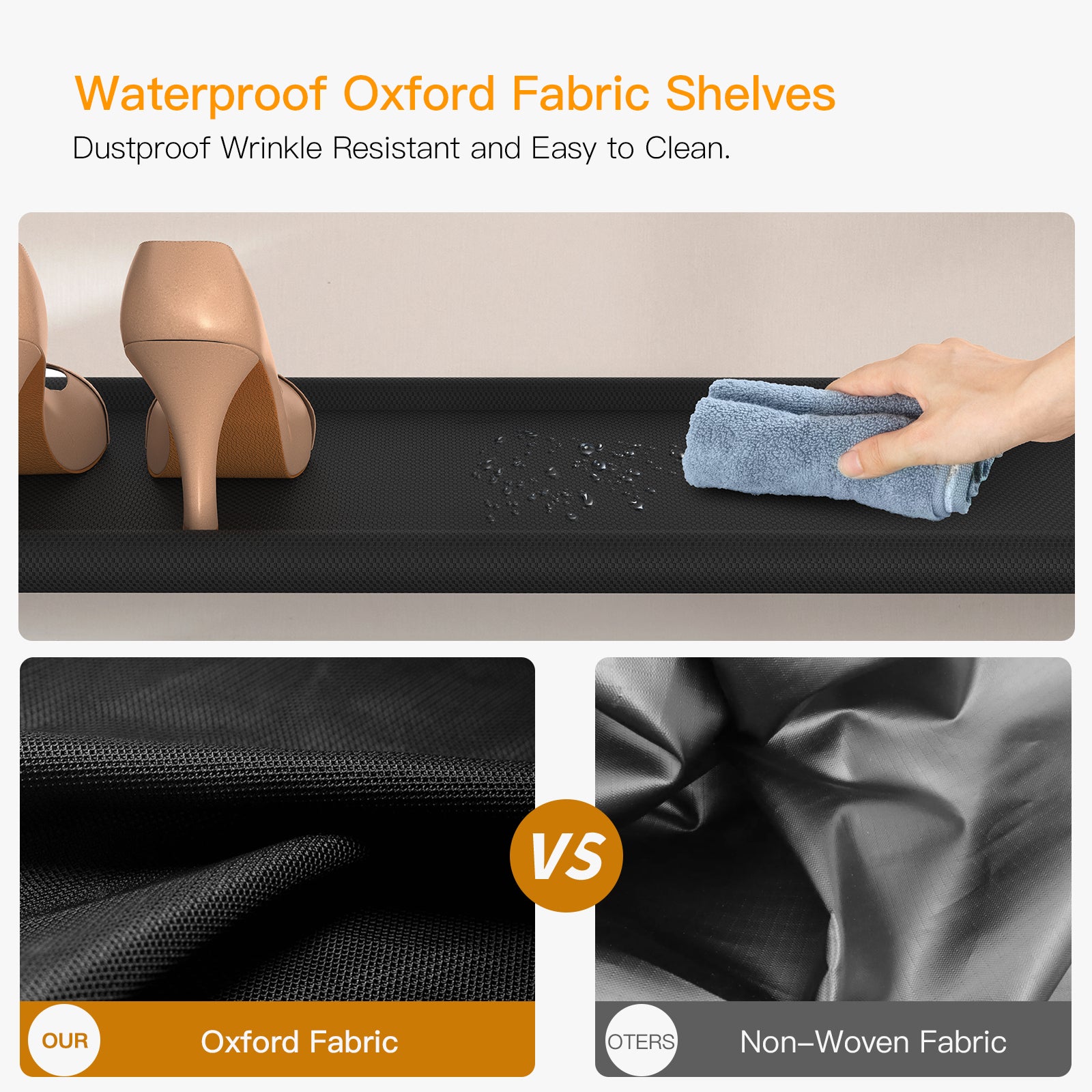 - 【High-Quality Materials & Durable and Stable】The frame of the shoe rack is made of thickened square metal tubes, which are more sturdy and beautiful than circular metal pipes. The P2 grade high-quality particle board countertop and Oxford cloth Shelves are waterproof and moisture-proof, making the shoe rack easy to clean. The shoe shelf is equipped with an anti-tip kit that can be fixed to the wall for added safety