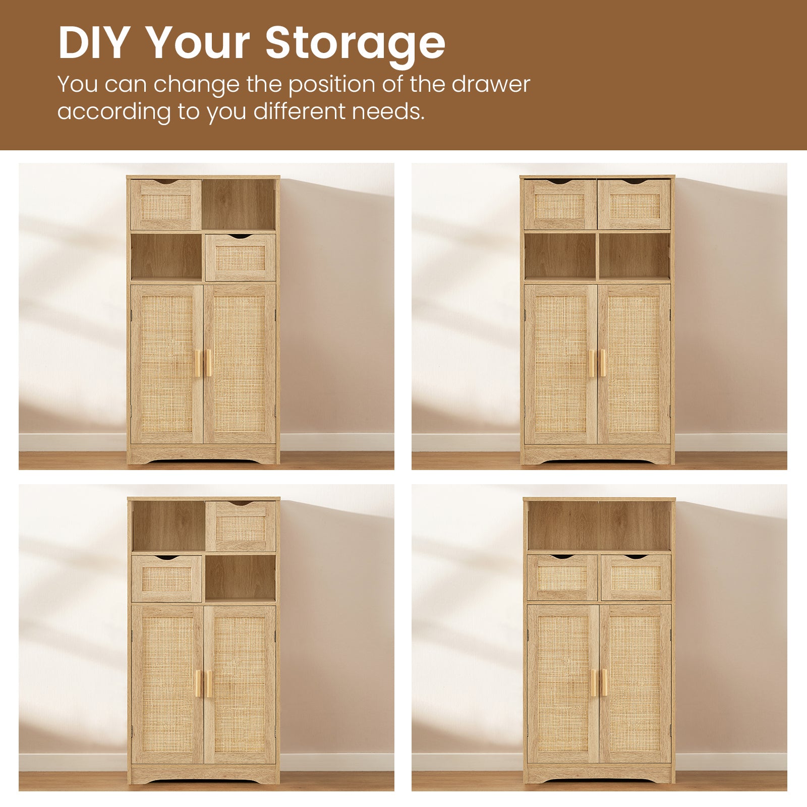 - ⭐【Enlarge Your Storage Space】Still search for extra storage for your home? Try this IWELL large storage cabinet, you can organize towels, aromatherapy, crafts, books, spice jar or other stuff inside, keep all your items well organized. There is adjustable shelf with 3 available heights, you can freely adjust the height to meet your various storage needs, while the drawers store your intimate stuff. It will be your assistant to tidy your rooms and drive your troubles of clutters away.