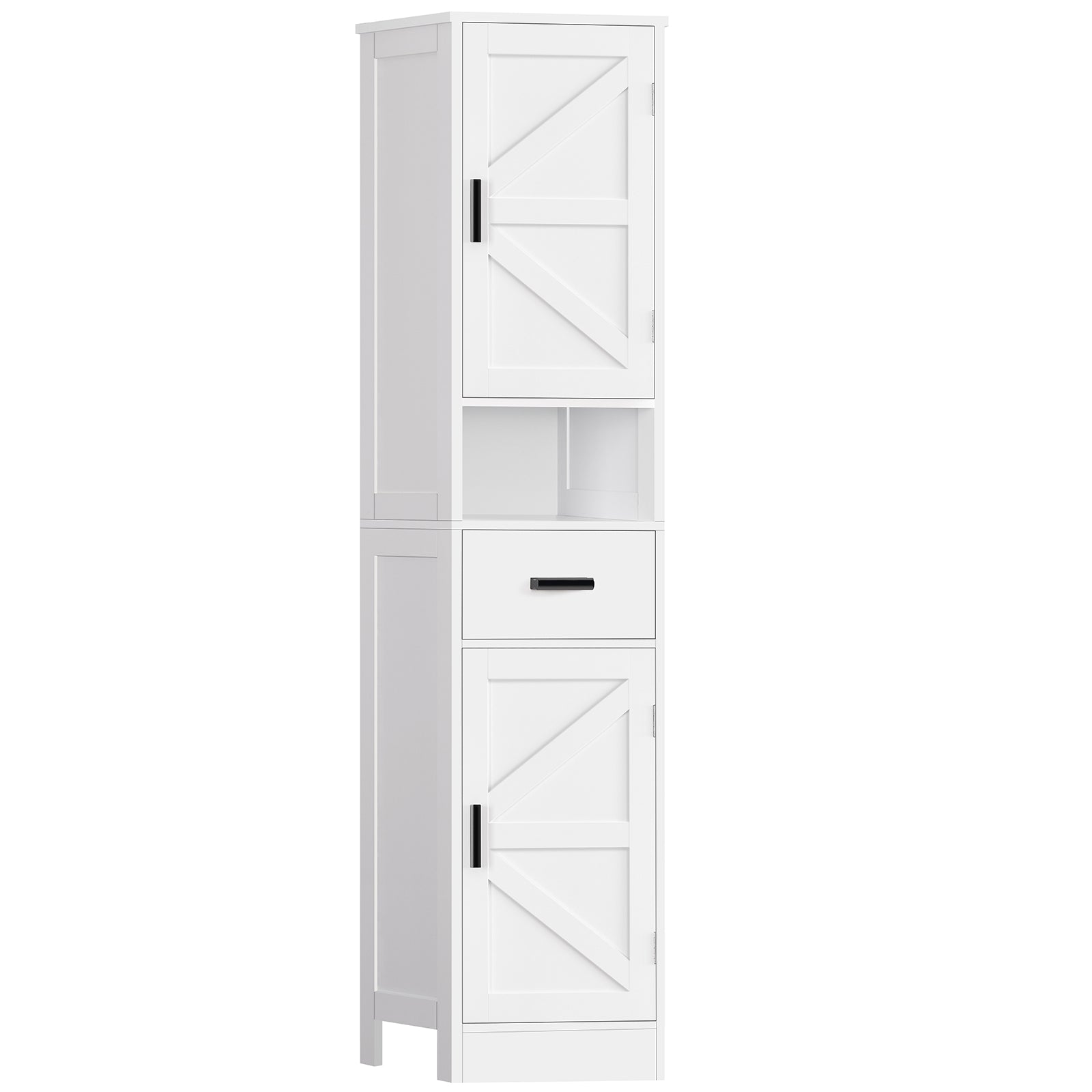 TEENFON Tall Bathroom Storage Cabinet with Barn Doors, Narrow Bathroom Cabinet with Drawer, Narrow Storage Unit, Adjustable Shelves, Floor Cabinets for Living Room, Entryway, Kitchen, White