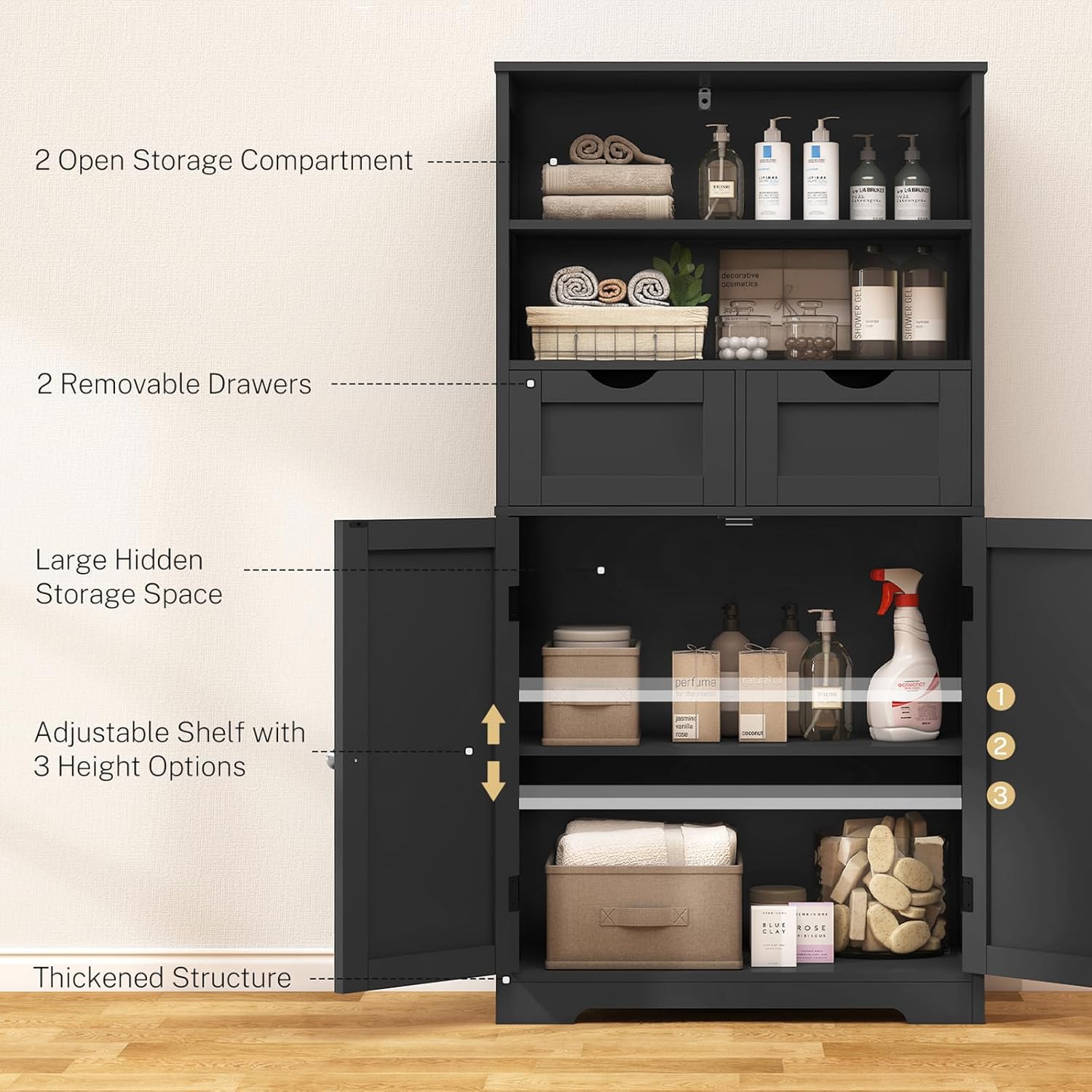 - ⭐【Assembly You’ll Love】No need to be bothered about bolts and nuts when assembling this bathroom floor cabinet, as it comes with numbered parts and easy-to-follow instructions to make it easy-peasy.