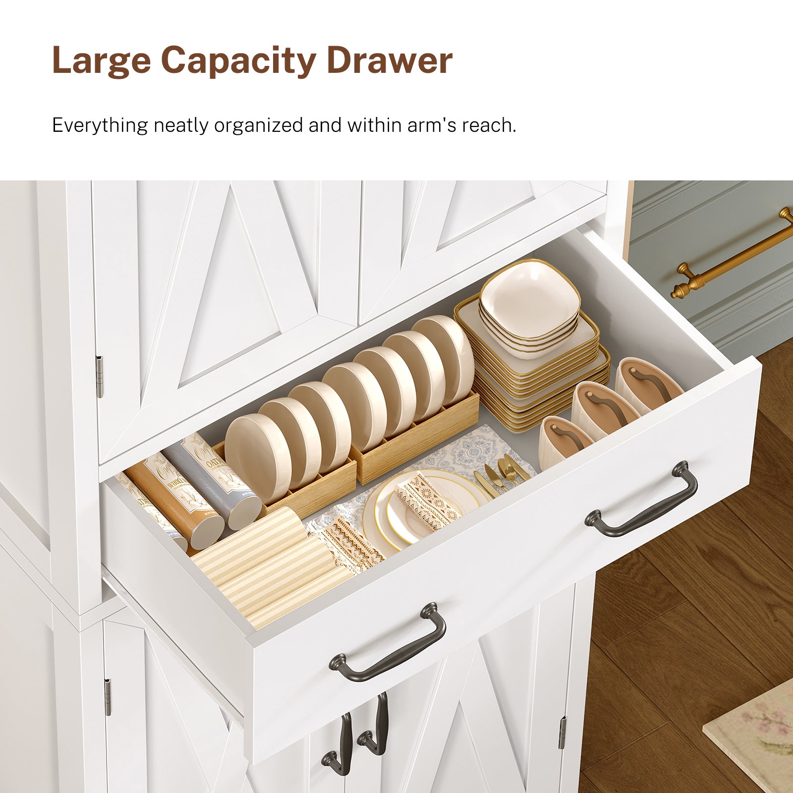 - ⭐【One Cabinet, Endless Uses】Imagine one cabinet serving your entire home. Use it as a bathroom cabinet for towels, a kitchen cabinet for groceries, or a living room storage cabinet for your favorite decor. Wherever you place it, its timeless farmhouse design instantly elevates your space, blending generous storage with effortless style.