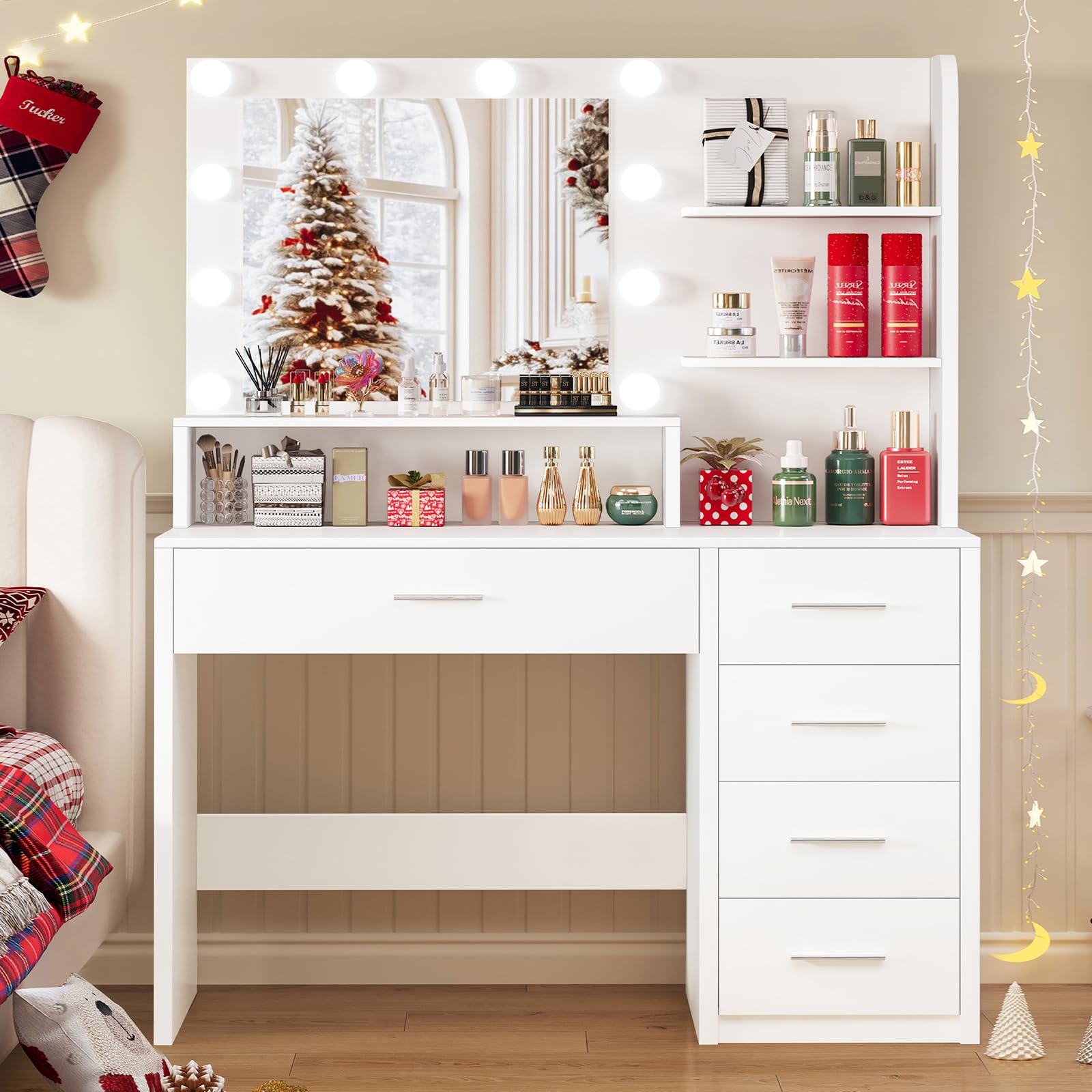 🎄【Ideal Christmas Gift】Looking for a thoughtful Christmas present? This stylish, functional vanity is perfect for wives, daughters, or moms! With its premium LED mirror, ample storage, and safe design, it’s a heartfelt holiday gift that elevates their daily beauty routine—adding joy and luxury to the festive season.