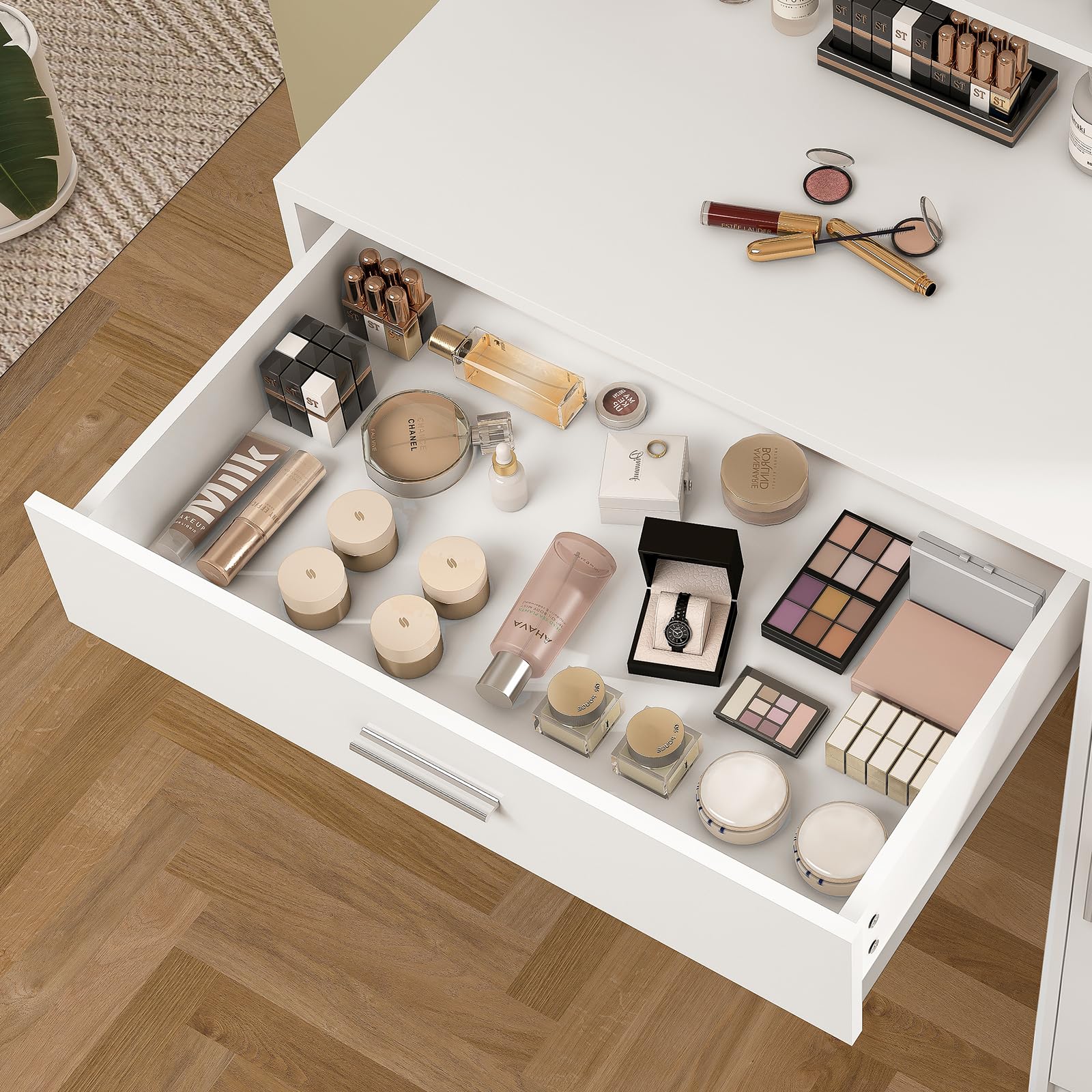 🧼 【Sturdy & Easy to Clean】Built from high-quality engineered wood, this vanity is both strong and durable. The smooth white finish wipes clean in seconds — no stress over makeup spills or everyday dust.