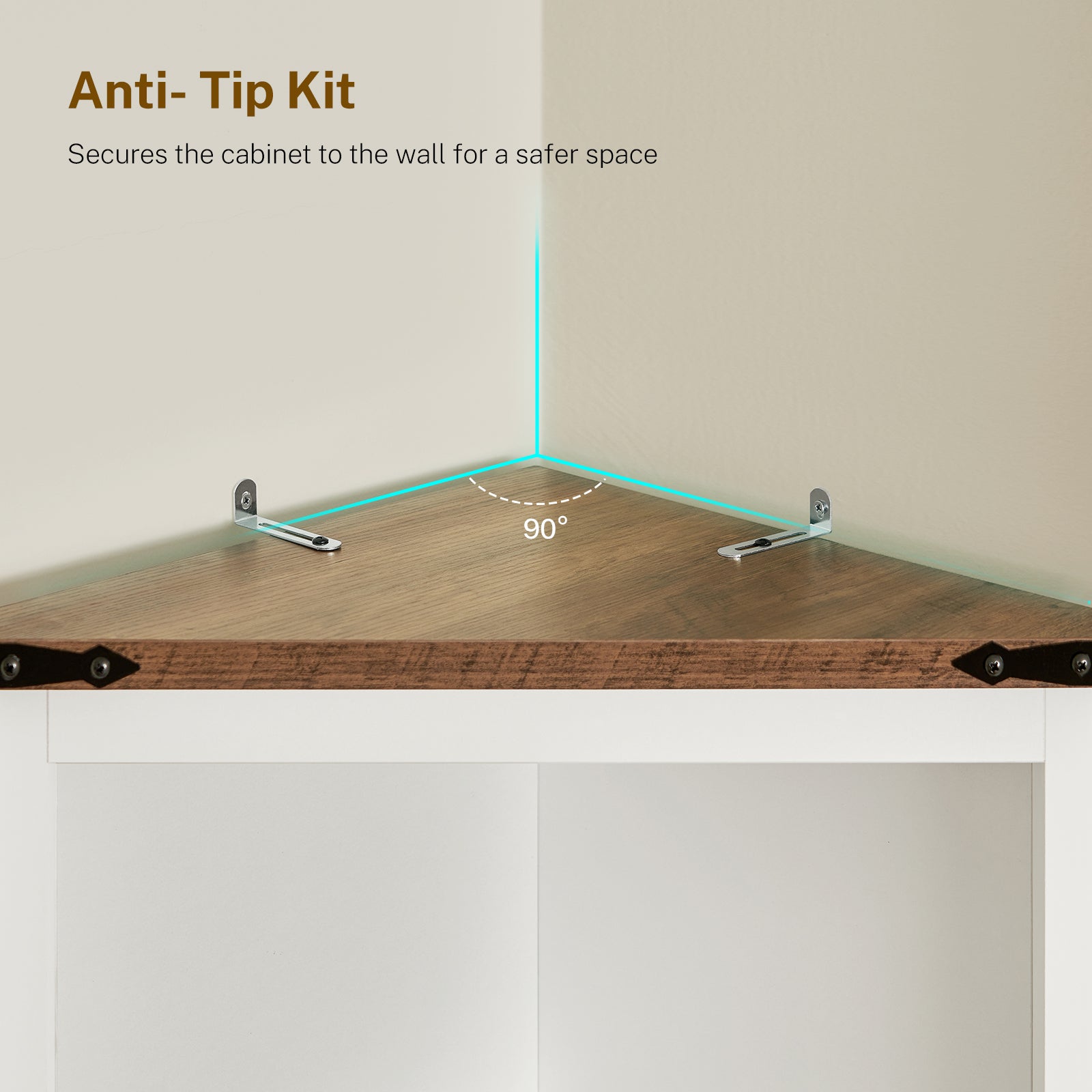 - 📐【Engineered Stability & Child-Safe Design】Featuring a 90-degree corner-fit design, this cabinet integrates seamlessly between walls for rock-solid installation. The anti-tipping kit prevents corner cabinets from accidentally tipping over and ensures worry-free use around rambunctious pets and climbing toddlers.