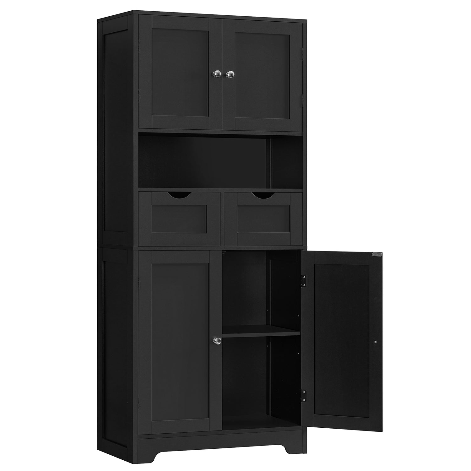57.8" H Tall Storage Cabinet with 2 Drawers & 2 Adjustable Shelves, Floor Cabinet with 4 Doors, Tall Cabinet for Living Room, Dining Room, Entryway, Black