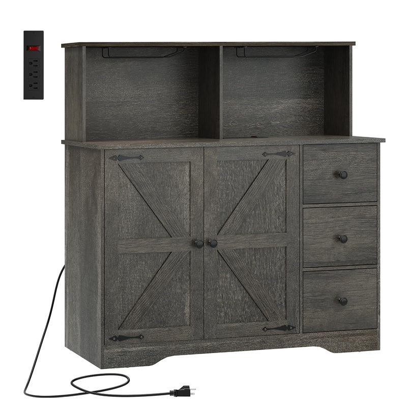 Read nowFarmhouse Coffee Bar Cabinet with Power Outlet, Sideboard Buffet Table with Wine and Glass Rack & Adjustable Shelves, White